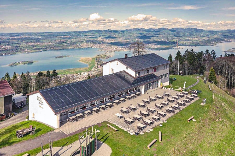 Das Bergrestaurant Etzel Kulm, das ganz oben auf dem Ausflugsberg des Zürichsees steht, feierte nach einigen Wochen Umbauzeit am 1. August 2021 seine Wiedereröffnung.