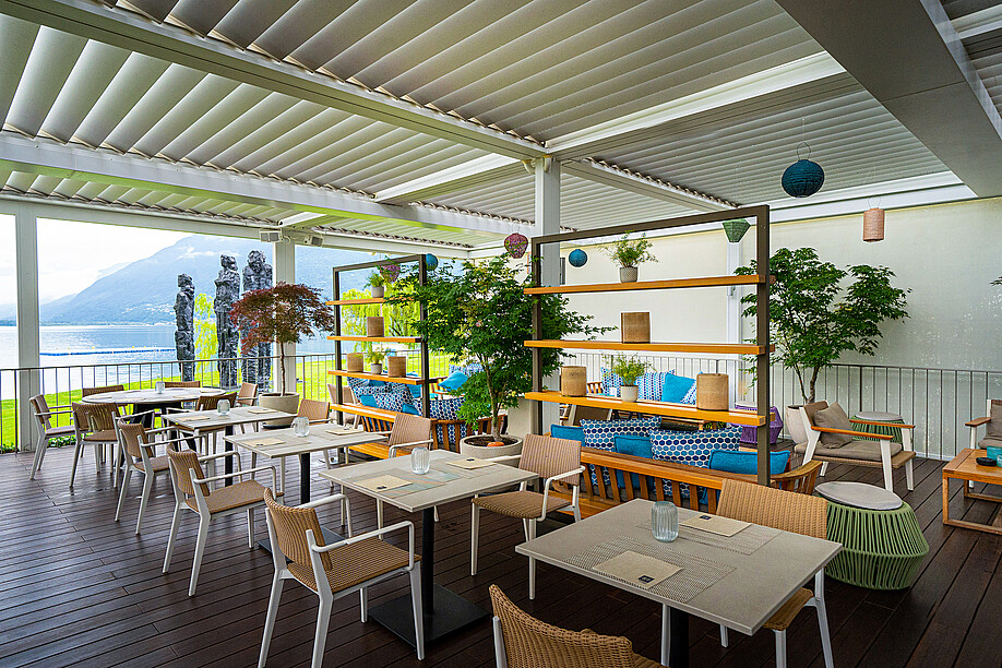 Sanft kräuseln sich die Wellen im Wind. Weit draussen ruht ein Segelboot auf dem Wasser. Am gegenüberliegenden Ufer leuchten die Berge im Abendlicht. Ein einsamer Schwimmer pflügt sich noch mit kräftigen Zügen durch den See. Von oben beobachtet eine Möwe die Szene. Es ist ruhig. Ein guter Moment, in dieser einzigartigen Kulisse den Alltag hinter sich zu lassen, zu entspannen und den Moment zu geniessen. Ein Caffè auf der grosszügigen Terrasse? Ma sì! Danach vielleicht ein kleiner Apero mit Seesicht? Ma certo! Später möglicherweise den Gaumen verwöhnen? Auf jeden Fall. So ist es hier. Im Restaurant & Lounge Blu am Lido in Locarno.