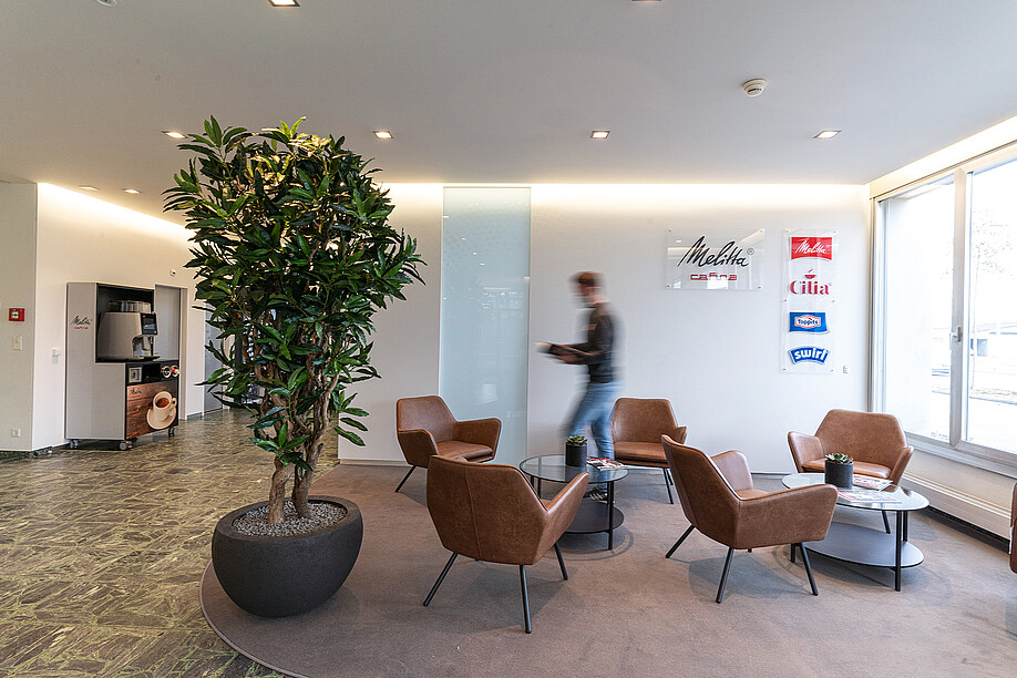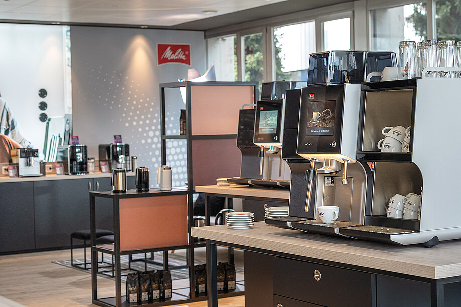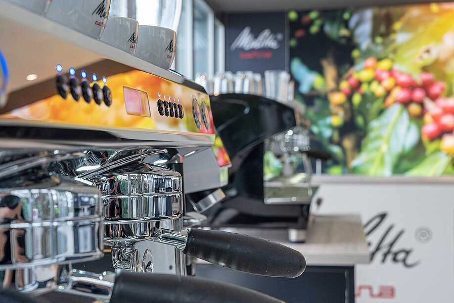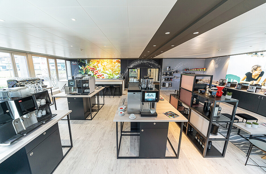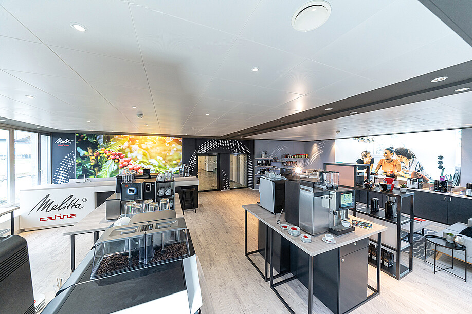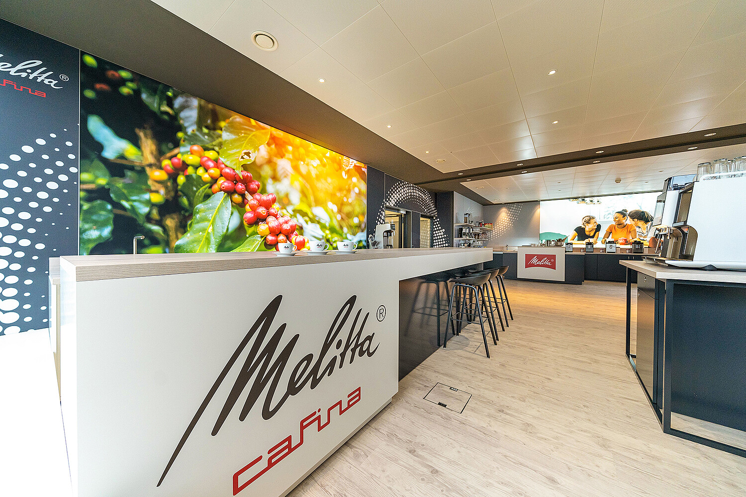 Der Showroom an der Untere Brühlstrasse 13 in Zofingen hat Stil, er ist grosszügig, hell, beeindruckend. Die vollflächige Raumbespannung bringt Farbe und Stimmung in den Showroom, eine lebhafte Kulisse, einerseits für Melittas Haushaltprodukte, anderseits für Cafinas Top-Kaffeevollautomaten – zwei Welten in einem Raum. An der Bar sollen dereinst die Kundinnen und Kunden frischen Kaffee geniessen können. «Angedacht sind auch Themen-Events, vielleicht zu Milchkreationen oder Kaffeedrinks mit und ohne Alkohol. Ideen gibt es viele», sagt Christoph Kuhn, Verkaufsleiter der Cafina AG. Doch die Realisierung muss ebenso warten wie die geplante Eröffnungsfeier.