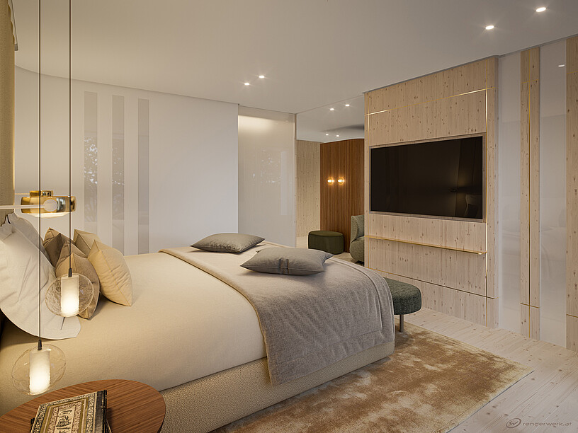 Die letzten Arbeiten laufen auf Hochtouren. Zeitweise sind bis zu 100 Handwerker damit beschäftigt, die Innenräume des Hotels komplett zu renovieren. Bis auf den Spa, der 2012 vollumfänglich saniert wurde, «entsteht im Innern praktisch ein neues Hotel», so Eliane Zegg, gemeinsame Inhaberin mit Ehemann Hubert Zegg. Mehr als 20 Millionen Franken werden investiert, um die 20 Suiten und 25 individuellen Doppelzimmer zusammen mit dem Architekturbüro Fanzun aus Chur unter der Projektleitung von Jeremy Jenal neu zu gestalten. Neu stehen elf Zimmerkategorien zur Auswahl, alle mit individuellem Touch und mit Liebe zum Detail eingerichtet. Der luxuriös-elegante Stil wird von einheimischen Materialien wie Arven- und Lärchenholz sowie Granit geprägt. Für den «Alpencharme mit besonderem Chic» sind Eliane Zegg und die Innerarchitektin Cathrin Hoch und Innenarchitekt Burkhart Röck verantwortlich. Die Koordination des Baugeschehens liegt in Olivier Zeggs Hand, dem Sohn des Inhaberpaares und Juniorchef der ZEGG-Betriebe.