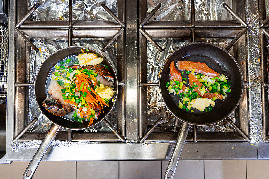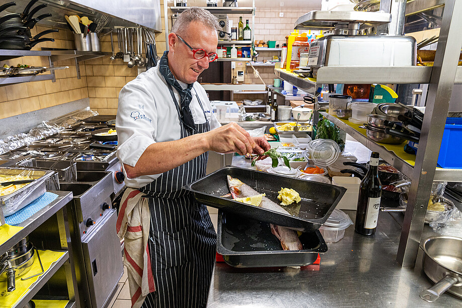 Und die ihren Preis wert sind. «Zum Beispiel der Thunfisch: Für ein Top-Produkt zahle ich mehr, habe aber keine Abfälle, kann in einem Tatar oder Carpaccio restlos alles verwenden.» Das ist Nachhaltigkeit, die sich auszahlt. Doch ums Geld geht es Roberto Biaggi nicht. Wie leicht könnte er an diesem Standort mit Günstig-Eglis eine ständig ändernde Laufkundschaft bedienen. Und so lautet eine seiner wichtigsten Botschaften an die Lernenden in seinem Betrieb: «Ehrlich mit sich selber sein, sich nicht für schnelles Geld verkaufen, sondern mit ausgezeichneten Produkten und viel Leidenschaft Gäste bedienen, die gerne wiederkommen.»