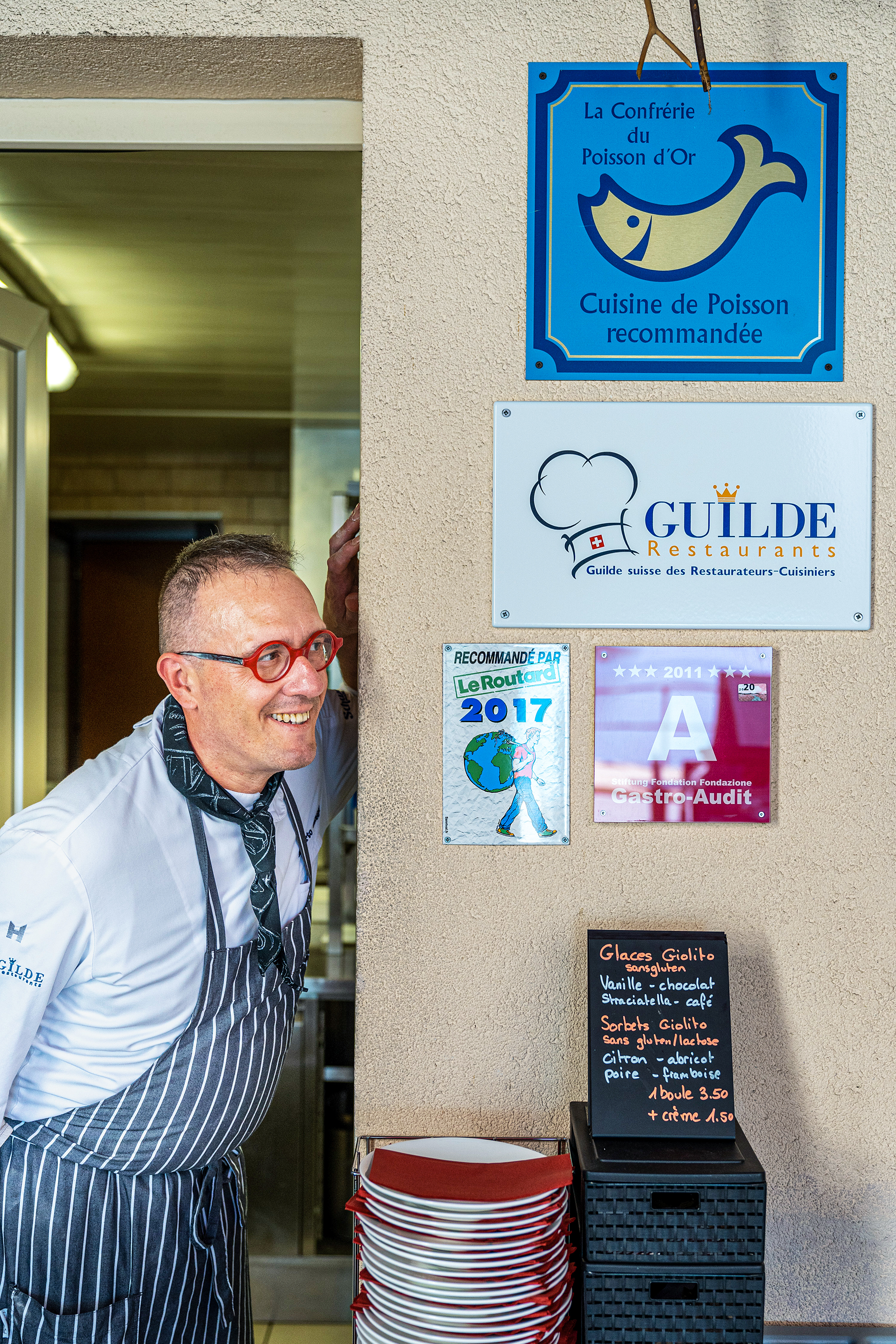 Roberto Biaggi ruht nicht auf Bewährtem aus, sondern erfindet Bekanntes immer wieder neu. Er und Sylviane Biaggi bedienen im Restaurant du Lac 80 Prozent Stammgäste aus der Region, die – weit gefasst – bis nach Genf, Lausanne und Yverdon reicht. Einige kommen monatlich, andere sogar wöchentlich. Für sie steht dann beispielsweise die «Table du Patron» bereit – ein Tisch in der Abgeschiedenheit der Küche. Eine einzigartige und optimale Kulisse für Geschäftsessen und Gespräche, die in der Hektik eines Mittags- oder Abendservice untergehen, den Gästen aber die erwartete Diskretion bieten. «Wer hier sitzt, muss unsere Philosophie kennen: Auf der Speisekarte steht vielleicht ein Rindsfilet, und am Ende erhält der Gast nur einen Teil vom Rindsfilet, dazu einen Hummerschwanz und eine Jakobsmuschel. Ich zeige lieber auf dem Teller und nicht auf dem Papier, was es gibt.»