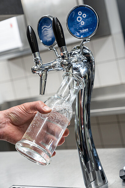 Ein super Trend und eine zusätzliche Chance für BWT, ihr Angebot auszuweiten. Laszlo Ceh erklärt: «Fast alle sind vom Konzept der BWT Wasserbar begeistert, aber nicht überall ist das System so rasch implementiert wie im Hotel Murten, nicht unbedingt aus technischen, sondern eher aus organisatorischen Gründen. Die Umstellung von Flaschen auf den Offenausschank mit Karaffen erfordert Zeit. Deshalb werden wir unseren Kundinnen und Kunden künftig ein Gesamtpaket anbieten, das auch Karaffen umfasst, welche wir auf Wunsch mit Logos beschriften.»