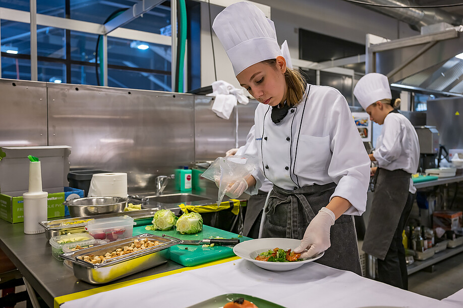 Für die Kulinarik waren während der ZAGG im Restaurant Dyhrberg Daniel Gehriger, Leiter Gastronomie und Hotellerie am Luzerner Kantonsspital, und sein Team verantwortlich. Denn – und das freute die Messeleitung ebenso wie die Besuchenden besonders – das Restaurant wurde von den Lernenden des Luzerner Kantonsspitals betrieben. Damit diese nicht einfach im «stillen Kämmerlein» arbeiteten, dachten sich die Macher etwas ganz Besonderes aus: Durch grosse Fenster hindurch erhielten die Gäste Einblick in die Küche und konnten den Lernenden bei ihrer Arbeit zusehen. «Sie machten ihren Job hervorragend, zauberten Spitzenqualität auf den Teller und begeisterten die Gäste enorm», zieht Messeleiterin Suzanne Galliker nach der Messe ihr Fazit. «Zahlreiche Gäste erzählten mir von einem Wow-Effekt. Und genau das war unser Ziel. Entsprechend überdurchschnittlich gut besucht war das Restaurant denn auch. Über Mittag waren die 96 Sitzplätze im Innern und die 24 Sitzplätze in der Lounge immer voll besetzt.»