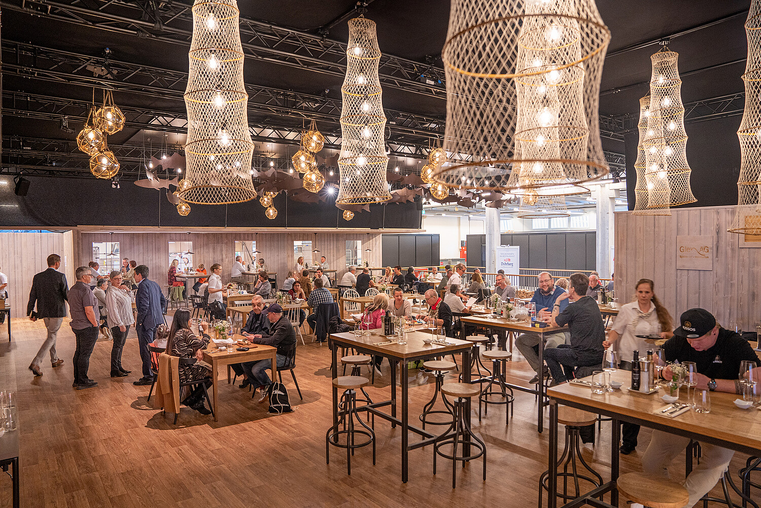 Zu dieser positiven Stimmung beigetragen hat wohl auch das Restaurant Dyhrberg, welches sich in einem kürzlich überarbeiteten Ambiente präsentierte. Seit über 30 Jahren ist das Restaurant an der ZAGG vertreten, 2016 zog es in die Halle 3 um und wurde damit zu einem Mittelpunkt der Messe. «Dabei kam die Idee nach einem modernisierten Auftritt auf», erklärt Messeleiterin Suzanne Galliker. «Wir strebten ein Konzept an, welches den Veränderungen in der Gastronomie Rechnung trägt und sich gleichzeitig stärker an den Werten von Dyhrberg orientiert.» Entsprechend fokussiert das neue Konzept auf das authentische Erlebnis der Marke Dyhrberg mit ihren Werten Tradition, Handwerk, Rauch und Genuss, die sich im Restaurant Dyhrberg als roter Faden durchzogen – vom Mobiliar über das Gedeck bis hin zu den Speisen im Teller.