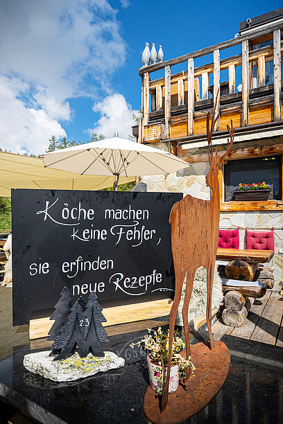 «Moru geit ds Moos üf – geh wer ga lüege, was Niwws git!», lautete vor ein paar Jahren der Dorfschwatz unten in Törbel. Amadé Kalbermatten lebt seine Kreativität in der Küche aus, probiert ständig Neues aus, lässt sich auf Reisen inspirieren und hat den Mut, sein Verständnis von Kulinarik auf höchstem Niveau auszuleben. So reicht die geschmacklich-kombinatorische Palette vom Feigencarpaccio, das mit Baumnusspesto und Burrata serviert wird, über die Lammhaxe mit Alpenthymian und dem herzhaften Raclette vom Feuer bis hin zum exzellenten Alpen-Sushi aus Reis, Aprikosen und Trockenfleisch. «Meine Küche ist exotisch-lokal-mediterran», beschreibt Gilde-Gastronom Amadé Kalbermatten seinen Stil. Für seine Kreationen geht er gerne raus in die Natur und sammelt Lärchenspitzli, wilder Broccoli, Pilze und andere Köstlichkeiten, welche das Hochmoor hergibt. Zur Freude der Gäste. Welche Art von Menschen den Weg auf die Moosalp finden? Vom Bauer bis zum Millionär. Vom Rennvelofahrer im Lycradress bis zur feinen Dame im Deux-Pièce.