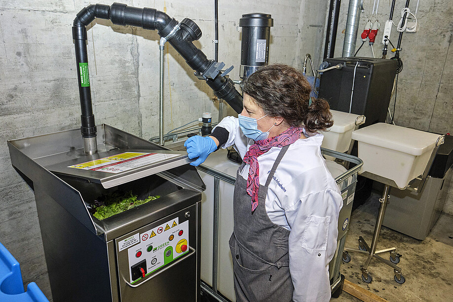 «Die maschinelle Entsorgung ist eine massgebliche Verbesserung zum bisherigen System mit den Kübeln, mit klaren Abläufen und ohne Kontamination an heiklen Stellen im Betrieb», zeigt sich Sabine Hagg im abschliessenden Feedbackgespräch gegenüber Jakob Wagner erfreut. Einzig die versehentliche Eingabe von Besteck und anderen Fremdstoffen gelte es zu vermeiden. Das erfordere eine etwas erhöhte Achtsamkeit des Personals und die Reinigung der Eingabestation nach dem Prozess eine gewisse Routine. Für das Personal ist die Handhabung des BioMasters aber insgesamt sehr einfach. «Die Anlage vermittelte uns ausserdem einen guten Überblick über unser Food Waste-Volumen und ist durch die hochwertige Wiederverwertung in der Biogasanlage ein nachhaltiges System», ergänzt Sabine Hagg.