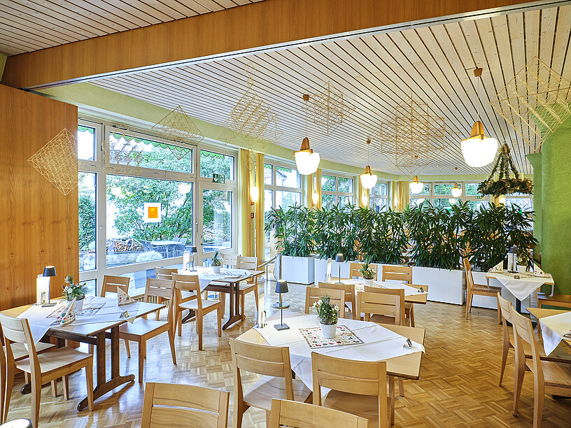 Aus der Klinikküche versorgen Sabine Hagg und ihr Team rund 90 Patientinnen und Patienten mit Frühstück, Mittag- und Abendessen ebenso wie die Gäste im Klinikrestaurant, das derzeit mit rund 50 Sitzplätzen coronabedingt nur die Hälfte der vorhandenen Kapazitäten nutzt. Im öffentlichen Restaurant essen Patientinnen und Patienten, die für Therapien oder Arztbesuche vor Ort sind, Angehörige, Stammgäste sowie in einem abgetrennten Bereich täglich auch rund 50 bis 60 Mitarbeitende der Klinik. «Das ergibt pro Tag bis zu 180 Mittagessen», erklärt Sabine Hagg, welche zusammen mit ihrem Team darüber hinaus Caterings für Klinik-Anlässe und -Tagungen produziert.