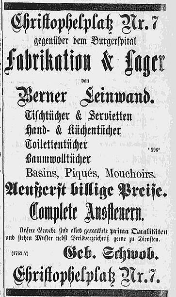 Das im Jahr 1872 gegründete Schweizer Unternehmen beschäftigt aktuell rund 220 Mitarbeitende und betreibt neben der Leinenweberei in Burgdorf fünf moderne Wäschereien. Die Schwob AG ist nach wie vor in Familienbesitz und die einzige Schweizer Leinenweberei für die Hotellerie und Gastronomie, welche zudem auch immer noch am ursprünglichen Standort im Emmental selbst produziert.