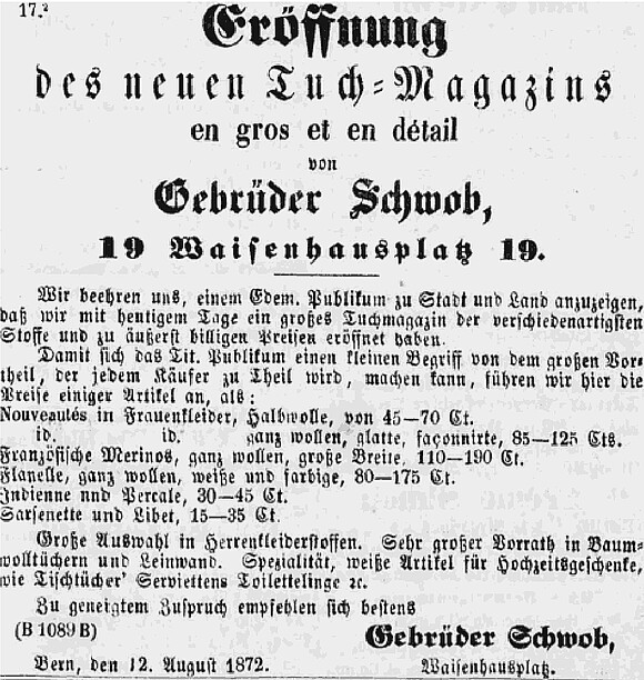 Die Schwob AG Burgdorf wurde 1872 gegründet und beschäftigt rund 220 Mitarbeitende an sechs Standorten in der Schweiz. Pro Jahr werden ca. 300 Kilometer Stoff verarbeitet. In der Weberei in Burgdorf im Emmental stehen 11 moderne Jacquard-Webmaschinen. 90 Prozent der Schwob-Produkte werden in der Schweiz abgesetzt, etwa 10 Prozent im Ausland. In den fünf Wäschereien der Schwob AG sowie in den Tochtergesellschaften werden jährlich etwa 11 000 Tonnen Wäsche verarbeitet.