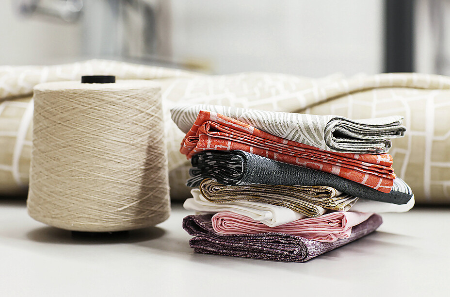 Nachhaltigkeit bedeutet bei Schwob auch Swissness. In Burgdorf produziert das Unternehmen pro Jahr bis zu 300 Kilometer Stoff. «Wir kaufen das Garn in Europa, wir entwickeln, gestalten und weben die Textilien im Haus, auch die Veredelung findet in Zofingen in der Schweiz statt, wir nähen in unserem Atelier in Burgdorf, später waschen wir die Textilien in unseren fünf Wäschereien in der Schweiz. Das ist Swissness pur – 100 Prozent», betont Stephan Hirt.