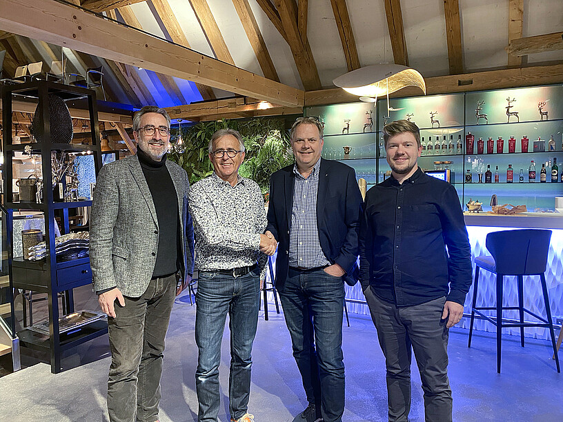 Die Gschwend AG Gastro-Bau hat sich neu aufgestellt. Geschäftsinhaber und Innenarchitekt Hans Brönnimann hat aufgrund seiner schrittweisen Pensionierung die Aktienmehrheit seinem langjährigen Partner und Mitinhaber Raymond Zürcher übergeben, bleibt aber weiterhin im Unternehmen tätig. Urs Hirschi ist stellvertretender Geschäftsleiter und für den Bereich «Kunden» zuständig. Mit im Führungsboard ist ausserdem Samuel Zürcher, der den Bereich «Ausführung» leitet. Ein fittes Team, das für die Zukunft gut gerüstet ist.