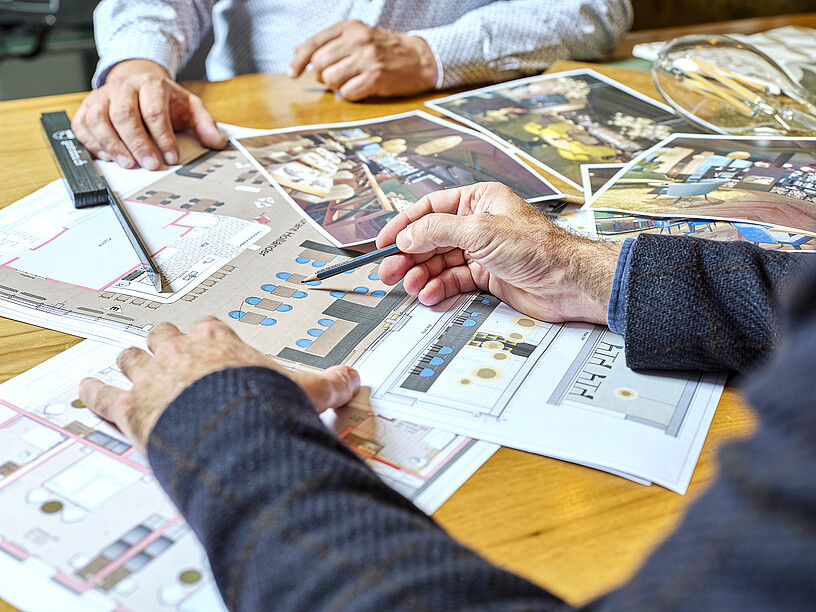 Es ist ein Findungsprozess, einiges wird verworfen, anderes wieder aufgenommen. Das Resultat ist ein Rahmen, der Raum für die Detailplanung bietet, zu der auch Behörden wie die Denkmalpflege oder die Stadtbildkommission beigezogen werden. «Bei der Eröffnung wollen wir schliesslich eine praxistaugliche Gastronomie vorweisen, die funktioniert und den Erwartungen der Auftragsgeber entspricht», sagt Urs Hirschi und betont dabei die Wirksamkeit eines roten Fadens, der im Gesamtprodukt erkennbar ist, wenn ein Team vom Konzept bis zur Eröffnung für alles verantwortlich ist. Was im Umkehrschluss nicht heisst, dass Einzelphasen nicht genauso gut trennbar sind und in verschiedenen Händen zum Erfolg gedeihen können.