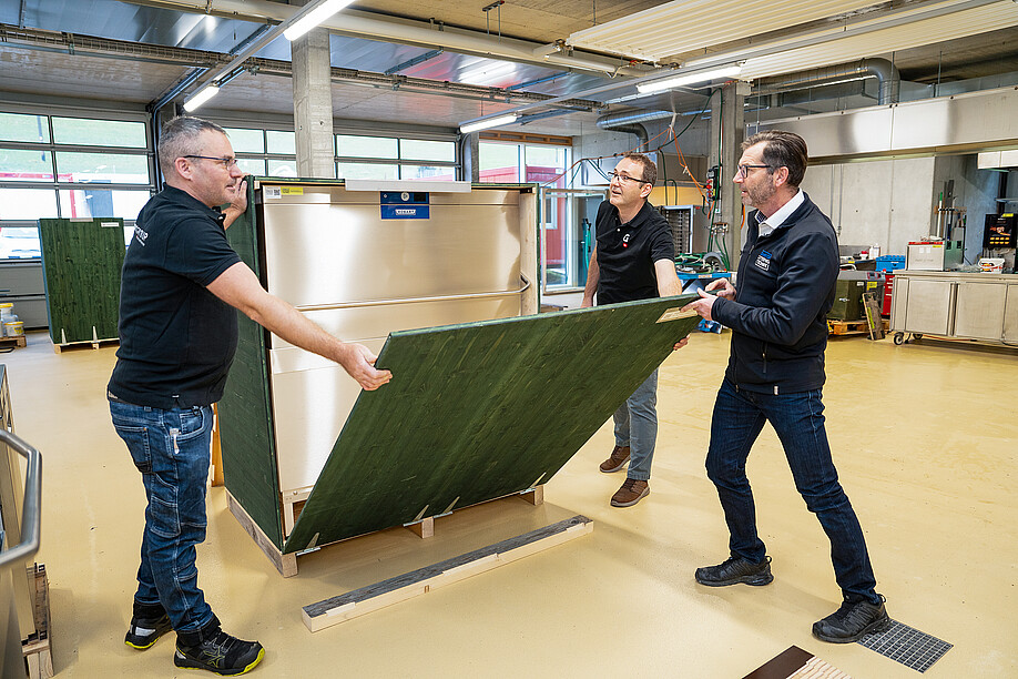 Wer die Oswald Cateringtechnik AG an ihrem Firmensitz besucht, fährt raus ins Grüne, biegt auf die schmale Dorfstrasse nach Oberthal im Emmental ab und fährt ein paar Kurven links und rechts hoch. Und staunt, dass da hinten noch ein so grosses, modernes Firmengelände steht. Es gehört der Oswald Cateringtechnik AG. Die Liebe zur Gastronomie entdeckte Inhaber Rolf Oswald in der siebten Klasse, als er fürs Sackgeld im Restaurant spülen ging. Nach der Schule lernte er Koch und absolvierte die Wirtenschule. Parallel dazu baute er mit seiner Familie einen Partyservice auf. An den Wochenenden gab er alles für seine Gäste, unter der Woche arbeitete er im Akkord im Storenbau. 1995 übernahm die Familie Oswald einen Gastrobetrieb. 1998 war klar, dass sie den Betrieb nicht käuflich erwerben konnten, daher widmeten sie sich nebst dem Restaurant auch dem Aufbau der heutigen Oswald Cateringtechnik AG. Mit dem Ziel, dabei die Probleme zu lösen, denen sie in den Jahren zuvor als Caterer immer wieder begegnet waren. Mit Erfolg. Heute beschäftigt die Oswald Cateringtechnik AG 22 Mitarbeitende. Die Firma agiert als ganzheitlicher Partner, wenn es um mobile und provisorische Küchen geht. Sie liefern alles aus einer Hand. Sie vermieten nicht nur fast jedes gewünschte Küchengerät – vom Steamer bis zur Spülanlage – sie sorgen sich auch um die Lüftungstechnik, um das Frisch- und Abwasser sowie die Strominstallationen. Wer eine provisorische Küche braucht, erhält bei der Oswald Cateringtechnik AG den 360°-Service, damit am Tag X alles bereit ist zum Kochen. Am Event supportet das Team der Oswalds auf Kundenwunsch auch während des Anlasses. «Überall, wo eine Hand fehlt, springt unser Team gerne ein», erklären uns Anja und Silvan Oswald, die beiden erwachsenen Kinder von Rolf Oswald. Doch kommen wir noch einmal auf den erwähnten Problemlöser zurück: Rolf Oswald ist ein kleiner Daniel Düsentrieb. Er konzipierte beispielsweise eine Wasseraufbereitungsanlage für Grossküchen, mit welcher drei verschiedene Arten von Wasser aufbereitet werden können. Sie ist ausserdem so klein, dass sie auf einer Palette Platz hat. Oder er entwickelte ein Anrichteband, welches unter anderem auf dem Bürgenstock und in der Migros Gastronomie zum Einsatz kommt.