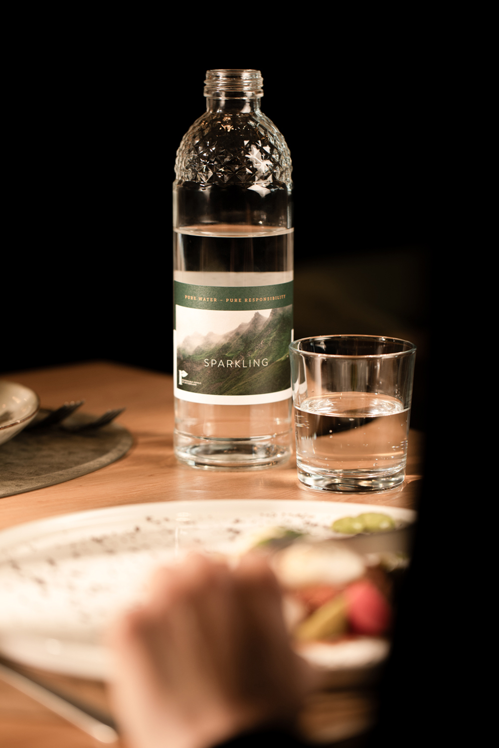 Die hochwertige Glas-Mehrwegflasche mit beeindruckender Brillanz wird vom Premium- Flaschenhersteller Hrastnik 1860 in Slowenien gefertigt, einem kleinen Unternehmen in Schweizer Händen. Nach dem Trinkgenuss gelangen die Flaschen zurück an den Abfüllort in Passugg, wo sie gereinigt und immer wieder neu befüllt werden. So entsteht ein geschlossener Kreislauf, der Ressourcen schont und die Umwelt entlastet. Passugger unterstreicht damit sein Engagement für soziale Verantwortung – im Einklang mit der Qualität und Reinheit des natürlichen Schweizer Mineralwassers.