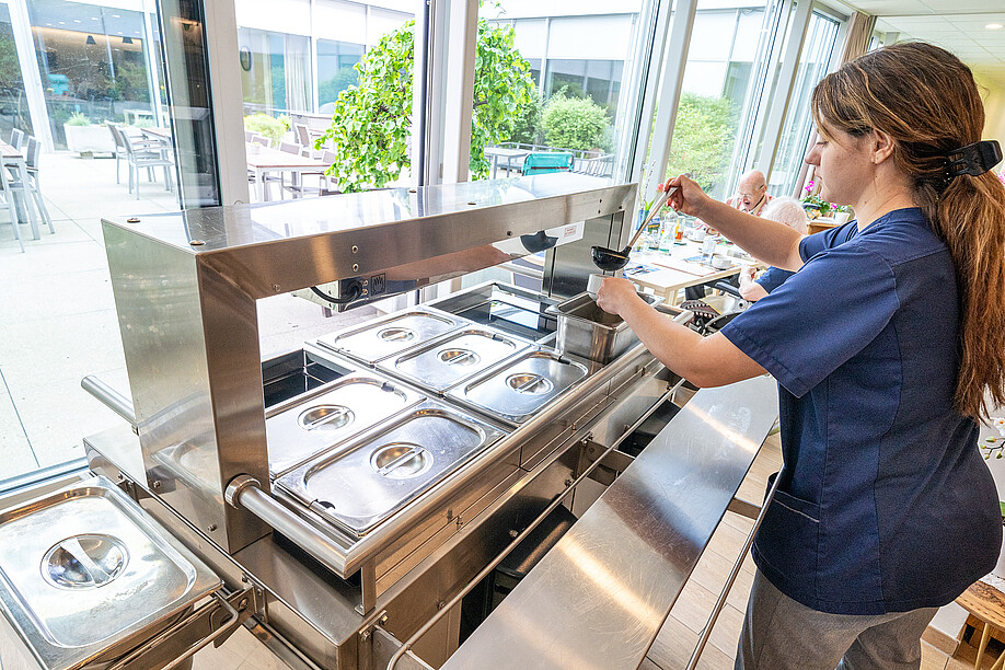 In der Residenz Au Lac mitten in Biel wohnen ältere Menschen in einem wertschätzenden Umfeld: Autonom in der eigenen Wohnung mit bedarfsgerechten Dienstleistungen inbegriffen, à la carte oder dann in der Pflegeabteilung mit 50 Einzelzimmern, verteilt auf vier Wohngemeinschaften. Sie geniessen ihre Mahlzeiten direkt auf den Stationen, frisch zubereitet von Küchenchef Simon Moser und seinem Team. Lieferung und Service erfolgen mit den praktischen ScanBoxen Food2Go Servicestationen mit integrierter Schöpfvorrichtung der Schmalz AG aus dem benachbarten Nidau.