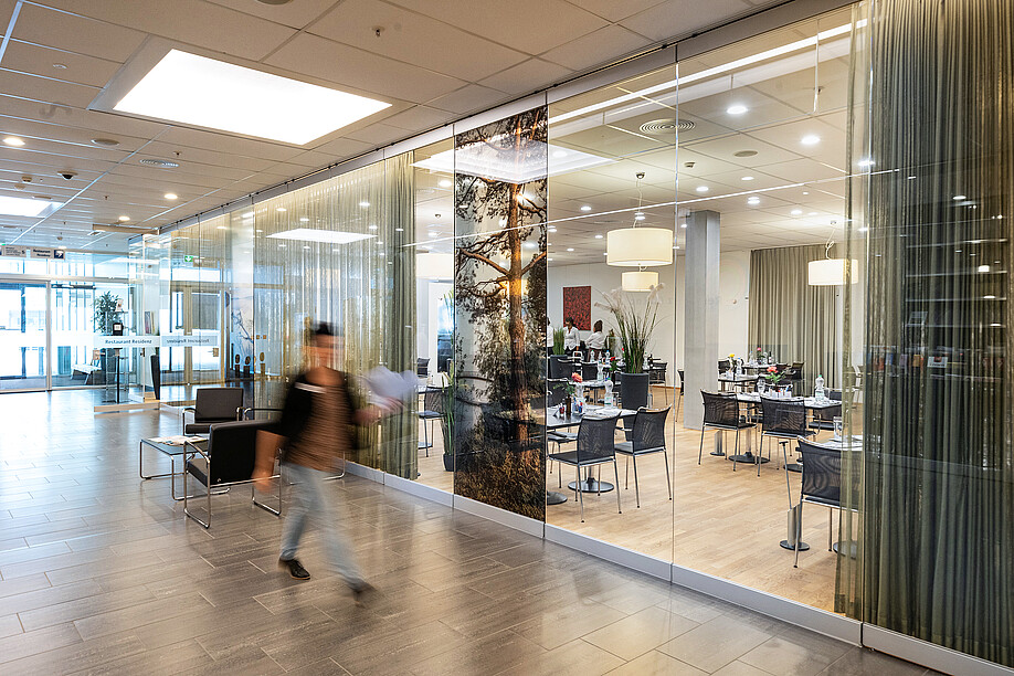 Das grosse Foyer, die Restaurant-, Event- und Seminarräume in der Residenz Au Lac werden auch gerne für Bankette, Galadinner und Seminar-Businessmenus gebucht, welche Küchenchef Simon Moser ebenfalls ausrichtet und so den Bogen von einer altersgerechten zu einer exquisiten Spitzenküche spannt. «Am Mittag bereite ich fein geschnittene Kost zu, am Abend Fünf-Gang-Menus mit Fisch und Rindsfilet», sagt Simon Moser, welcher Modernität in der Bankettküche mit Effizienz in der Speisenverteilung verbindet – konkret mit der Food2Go-Servicestation von ScanBox aus dem umfassenden Sortiment der Schmalz Distributions-Systeme AG, einer führenden Anbieterin von Speiseverteilsystemen in der Schweiz.