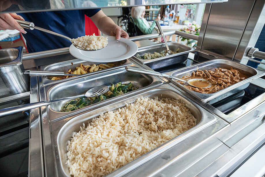 Die Food2Go-Servicestationen in der Residenz Au Lac sind mit je einem beheizbaren und einem neutralen Schrankraum ausgestattet. Zur Kühlung verwendet Küchenchef Simon Moser je nach Bedarf eutektische Platten, etwa, wenn das Team die Servicestation bereits am Morgen mit Desserts bestückt. Die pürierte oder fein geschnittene Spezialkost wird kurz vor dem Service tellerweise im beheizten Warmfach, die Zusatzkomponenten in GN-Schalen auf den Wärmeplatten warmgehalten. «Für den Service gehen die Food2Go-Servicestationen dann zum Pflegeteam auf den Wohngemeinschaften über. Deshalb war ihre Meinung bei der Wahl eines neuen Systems sehr wichtig», betont Simon Moser, der vor zwei Jahren mit der Evaluation begann, nachdem die Vorgänger-Lösung nicht mehr zufriedenstellend war und auch nicht mehr den veränderten Ansprüchen entsprach.