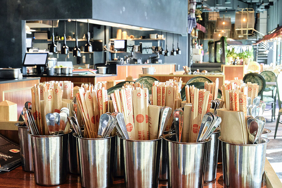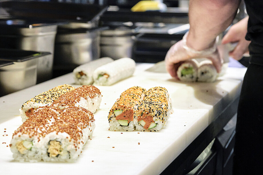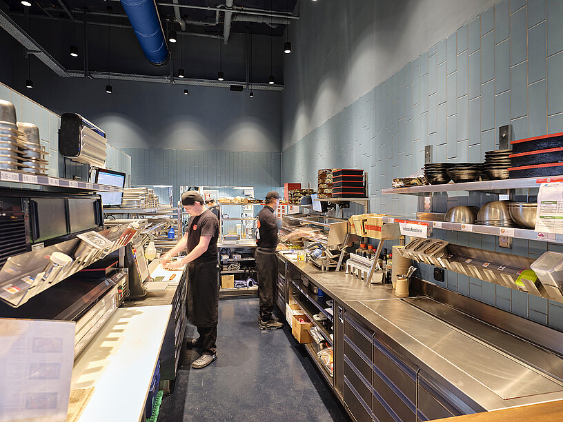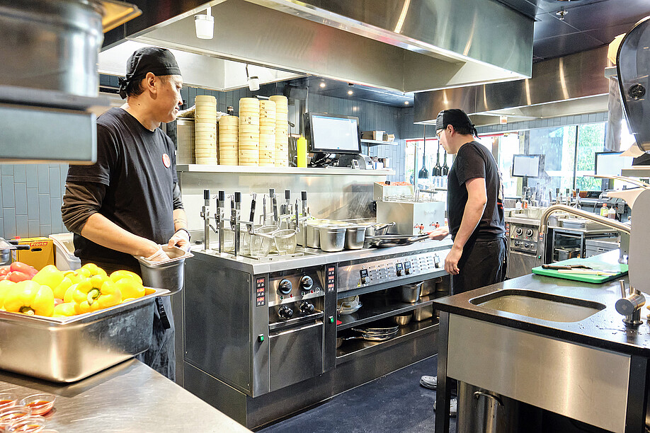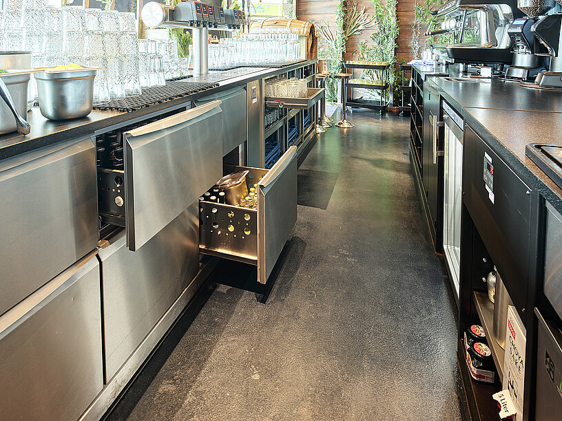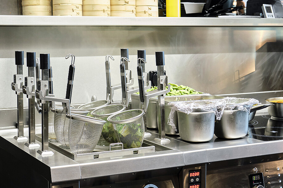 «Für das Nooch im Westside haben wir beispielsweise eine Herdanlage mit dem Nudelkocher zu einer Komponente verbaut und eingeflogen. Und auch im Bereich der Verarbeitung haben wir individuelle Ansprüche, beispielsweise was das Abschleifen scharfer Kanten anbelangt», sagt Bea Gantenbein. Spezialanfertigungen sind aber auch eine Kompetenz der Gamatech AG selbst. «Im Nooch arbeiten wir noch an einer Abdeckung rund um den Wok-Bereich, wo mit starker Flamme gearbeitet wird, um die angrenzenden Arbeitsbereiche besser abzuschotten. Entsprechende Elemente müssen demontierbar und einfach zu reinigen sein, also auch in die Spülmaschine passen», fasst Bea Gantenbein die umfassende Kompetenz der Gamatech AG abschliessend zusammen.