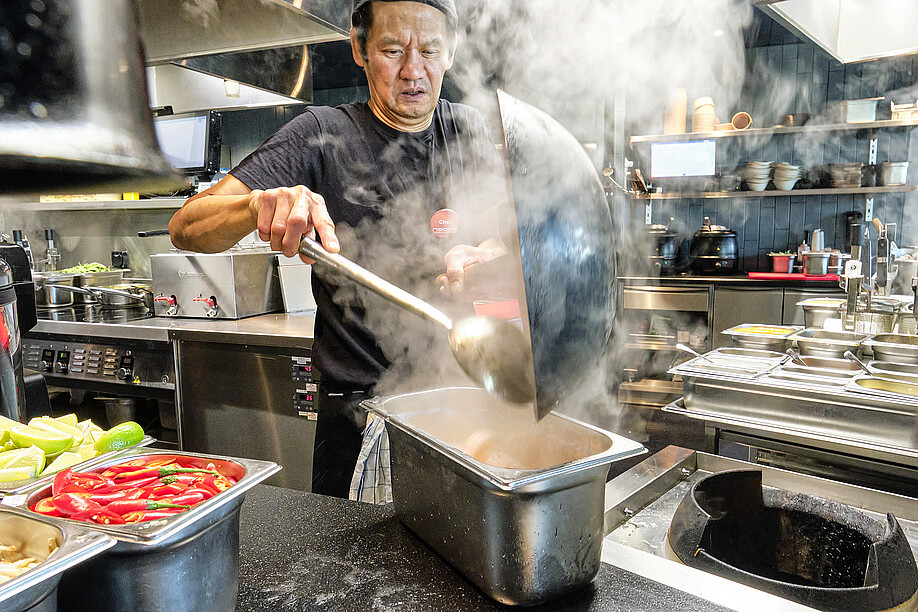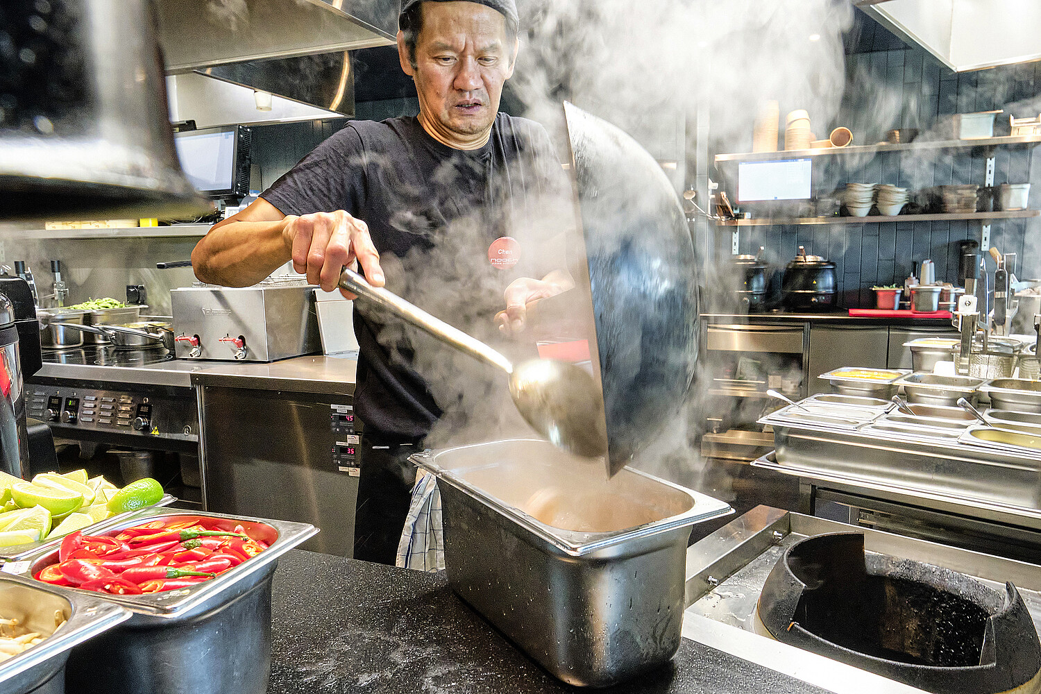 Nachhaltigkeit und Frische sind wichtige Eckpfeiler der Nooch-Asian-Kitchen. «Unser Gemüse beziehen wir aus regionalen Partnerschaften, das Fleisch kommt ausschliesslich aus der Schweiz. Und mit Rücksicht auf unseren Gaumen, der doch nicht so abgehärtet ist wie jener asiatischer Food-Fans, wird nicht zu scharf gekocht», erklärt David Kampfhoff.