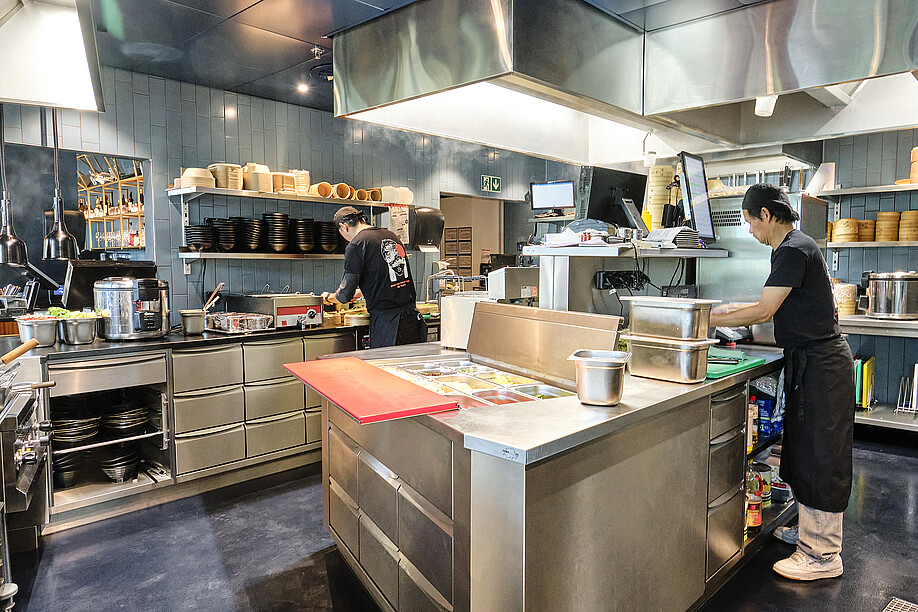 Effizienz erbringt die Partnerschaft natürlich trotzdem: «Anhand eines Grundrisses eruieren wir gemeinsam mit Gamatech den besten Standort für die Küche, erarbeiten eine grobe Raumeinteilung und platzieren die bekannten Bausteine wie Herd, Wok, Sushi-Station, Nudelkocher, Spülbereich und Bar. Mit Brainstorming suchen wir dann Ideen für einen sinnvollen Ablauf und haben in der Regel bereits nach der ersten Sitzung vieles geklärt. Darauf aufbauend fahren wir fort, hinterfragen vieles, überarbeiten die Pläne noch ein- bis zweimal, werfen die Küchenerfahrung der Basis mit in den Topf, schütteln alles dreimal durch und sind dann meistens am Ziel», bringt Kay Malsch-Spitzer die Prozesse lapidar auf den Punkt.