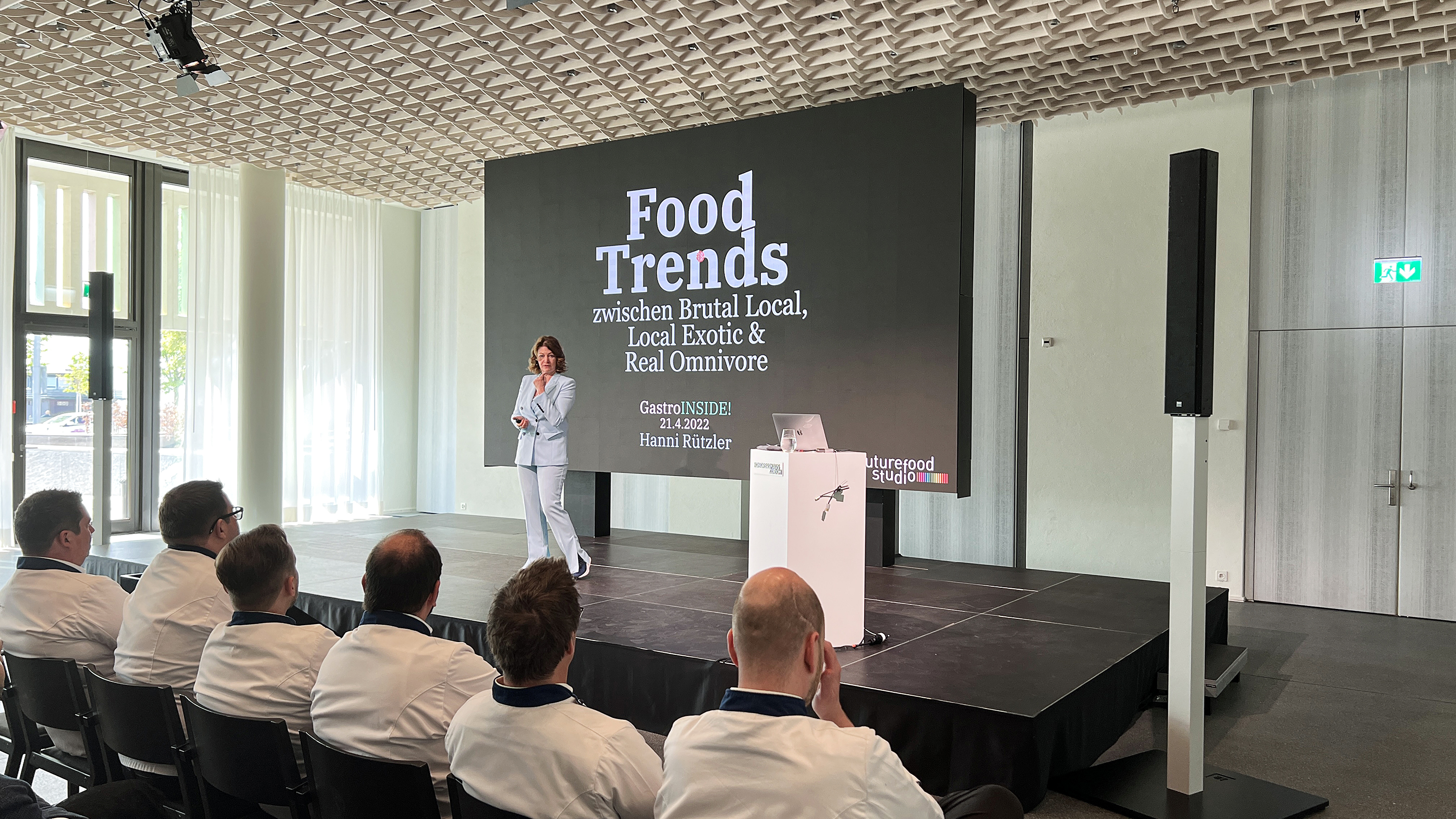 Mit Hanni Rützler erhielten die Teilnehmenden von GastroInside die Möglichkeit, eine der führenden Foodtrend-Forscherinnen Europas kennenzulernen. Sie weiss, welche Foodtrends für die Branche relevant sind, wie kurzfristige Produkt-Hypes und modische Trendphänomene von nachhaltigen Foodtrends unterschieden werden können. Seit 25 Jahren analysiert die ausgebildete Ernährungswissenschaftlerin und Gesundheitspsychologin mit ihrem Unternehmen Futurfoodstudios die Veränderungen unserer Esskultur und in der Food- &-Beverage-Branche und gab den Teilnehmenden von GastroInside einen Einblick, wie sie ihren Kunden entlang der gesamten Lebensmittelkette, hilft, Trends frühzeitig zu verstehen und für das eigene Unternehmen oder die eigene Organisation nutzbar zu machen.