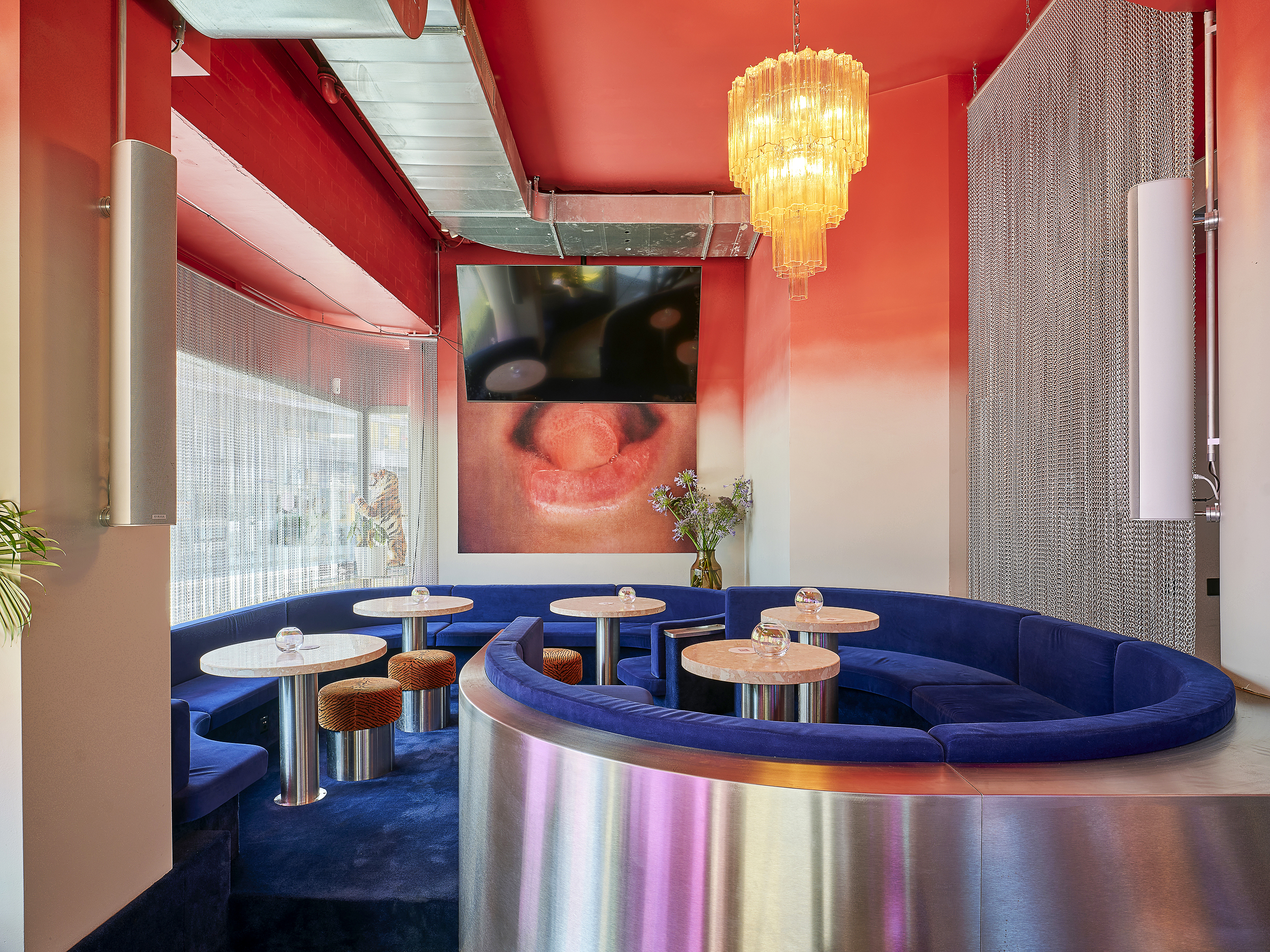 Wer durch die automatischen Schiebetüren ins Innere tritt, findet sich in einer farbenfrohen Umgebung wieder. Unter einer kirschroten Decke laden ein Dutzend Barhocker, mehrere kleine Stahltische und ein grosszügiger Sofabereich mit fünf Marmortischen die Gäste ein, Cocktails und Barfood-Spezialitäten in gemütlicher Atmosphäre zu geniessen. Je nachdem, wie zahlreich sie erscheinen, tun dies die meisten Besucherinnen und Besucher auch gerne im Stehen, wie der Tipsy-Tiger-Instagramkanal preisgibt. Bis zu 120 Gäste haben Platz. Versorgt werden sie von zwei Bartendern, zwei Serviceleuten sowie zwei Köchen.