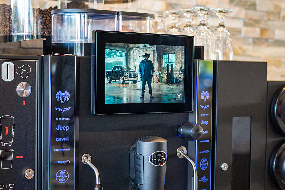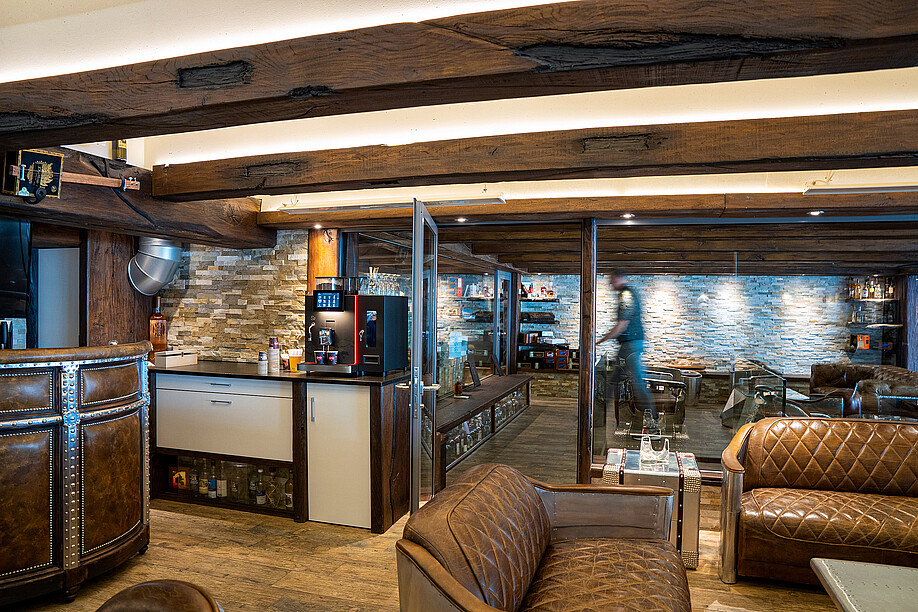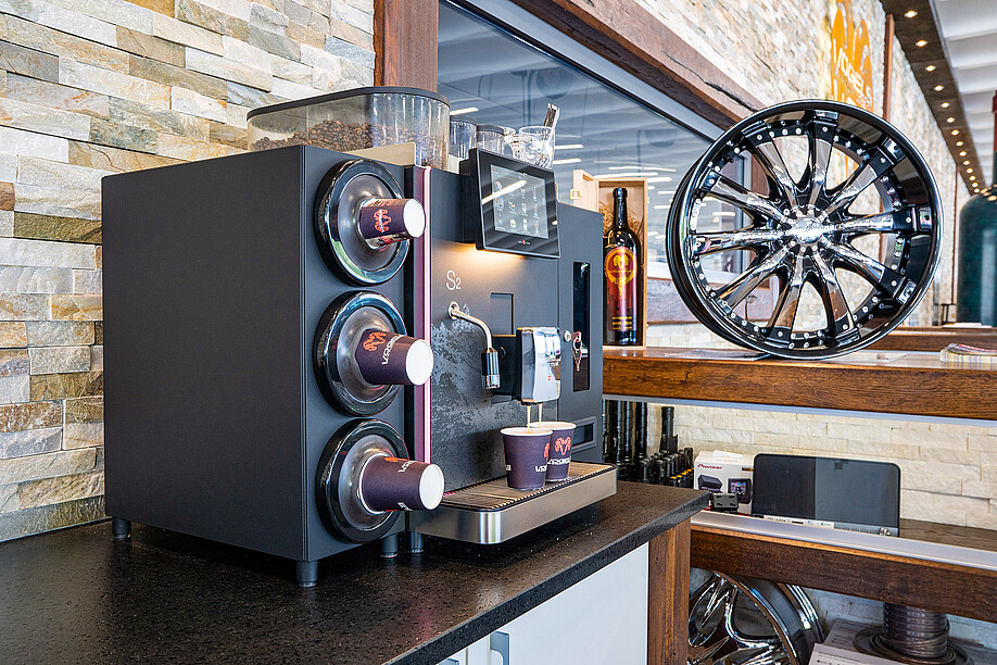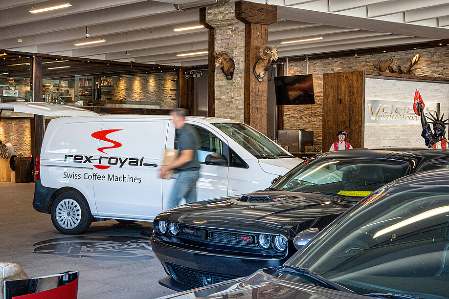 «Diese Vielfalt gefällt mir, du kannst sogar eine Suppe rauslassen, das ist doch geil», sagt André Vogel, der gleich zwei Top-Geräte in Betrieb genommen hat, die eigentlich viel zu gross ausgelegt sind für einen Showroom, selbst für ein Vogels Offroads. «Aber wenn wir etwas anschaffen, dann im grossen Stil», betont André Vogel gegenüber GOURMET. An den Kaffeevollautomaten bedienen sich nicht nur Kunden, sondern künftig auch Gäste, die einfach die amerikanische Atmosphäre des Offroads geniessen wollen. Oder seine Jodlerfreunde: André Vogel ist Mitglied des Jodlerclubs Lyssach. «Im Offroads finden die Gesangsproben statt. Auch die Jodlerinnen und Jodler beziehen ihren Kaffee an den Kaffeemaschinen S500 von Rex-Royal, die mit einem praktischem Bezahlsystem ausgestattet sind. Daneben steht ein Kühlschrank mit Mineralwasser, Wein und Bier. Hier ist Bezahlen Vertrauens- und damit Ehrensache.»