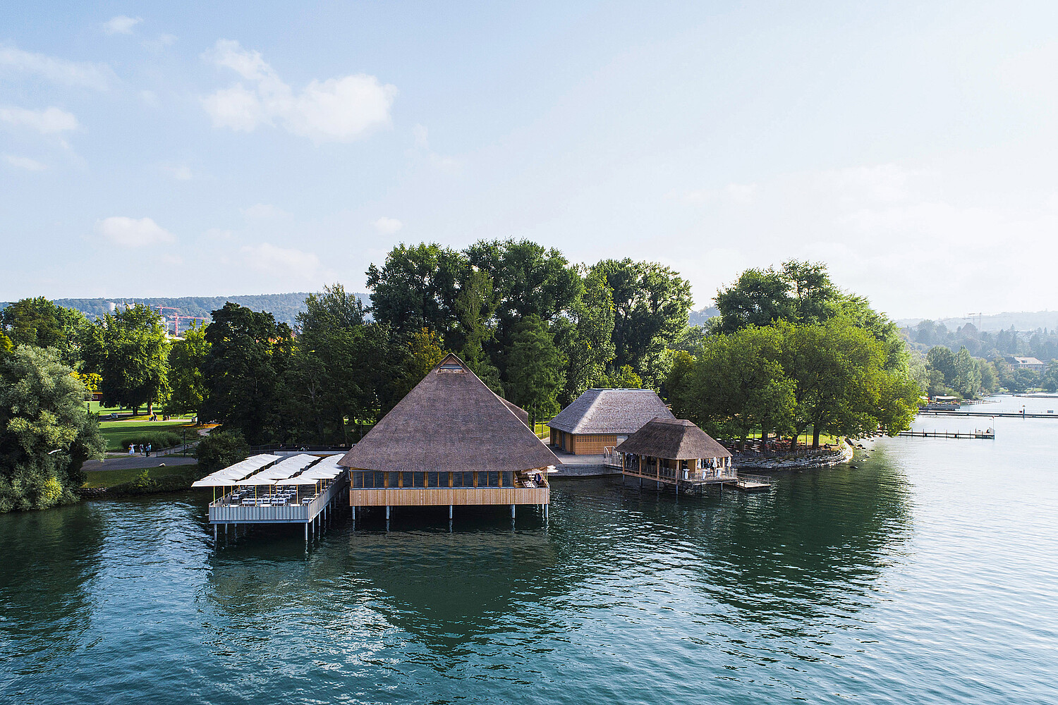 Ohne Übertreibung lässt sich sagen: Die Fischerstube am Zürichhorn in Zürich ist einzigartig. Ein Pfahlbau mit Baujahr 2021, ein Restaurant im Zürichsee stehend, inmitten der Freihaltezone. Möglich ist das nur dank der Vergangenheit der Fischerstube. 1939 war sie Teil des «Landi-Dörfli» anlässlich der Schweizerischen Landesausstellung. Das Original aber brannte 1956 ab, das wieder aufgebaute Gebäude und vor allem die Balken im Wasser waren nun aber in die Jahre gekommen. «Deshalb wurde ein Neubauwettbewerb ausgeschrieben. Und weil für eine Baugenehmigung das Neue dem Alten wesensgleich sein musste, wurde es wieder ein Pfahlbau mit Schilfdach, fast wie anno 1939», erklärt Martin Scheidegger, Immobilienbewirtschafter und Projektleiter der Liegenschaftsbesitzerin Zürich.