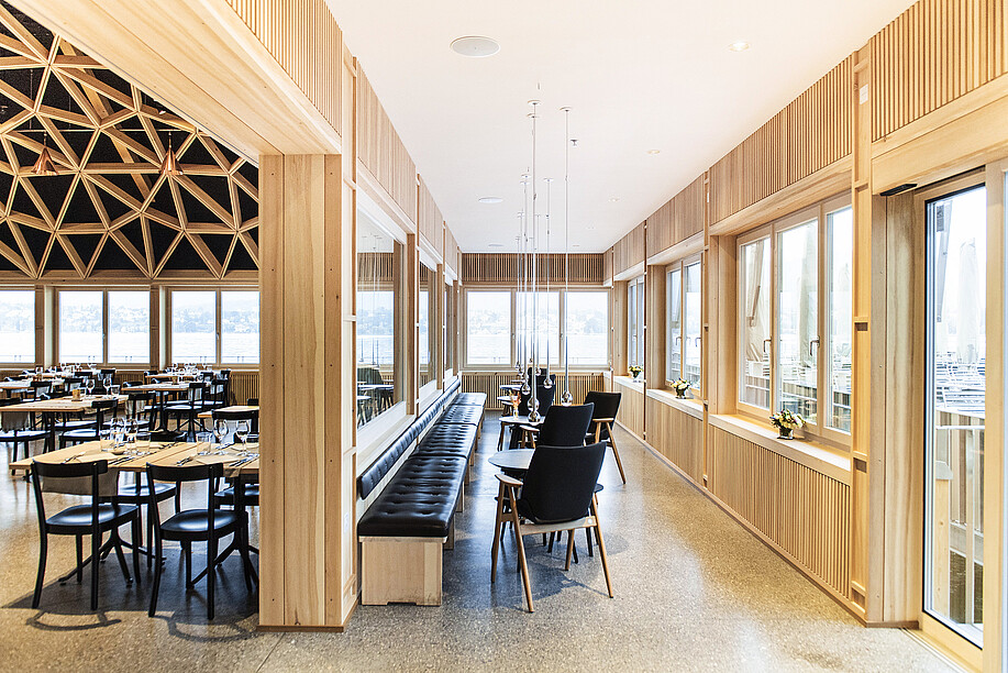 Die Fischerstube am Zürichhorn in Zürich feierte 2021 Neueröffnung. Im alten Kleid. Als Pfahlbau erinnert sie an vergangene Zeiten. Im Innern aber besticht sie mit einem natürlichen, innovativen Interior Design. Und mit einer top-modernen Gastroküche, die dank vielen durchdachten Details den begrenzten Platz optimal ausnützt.