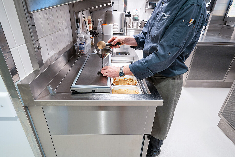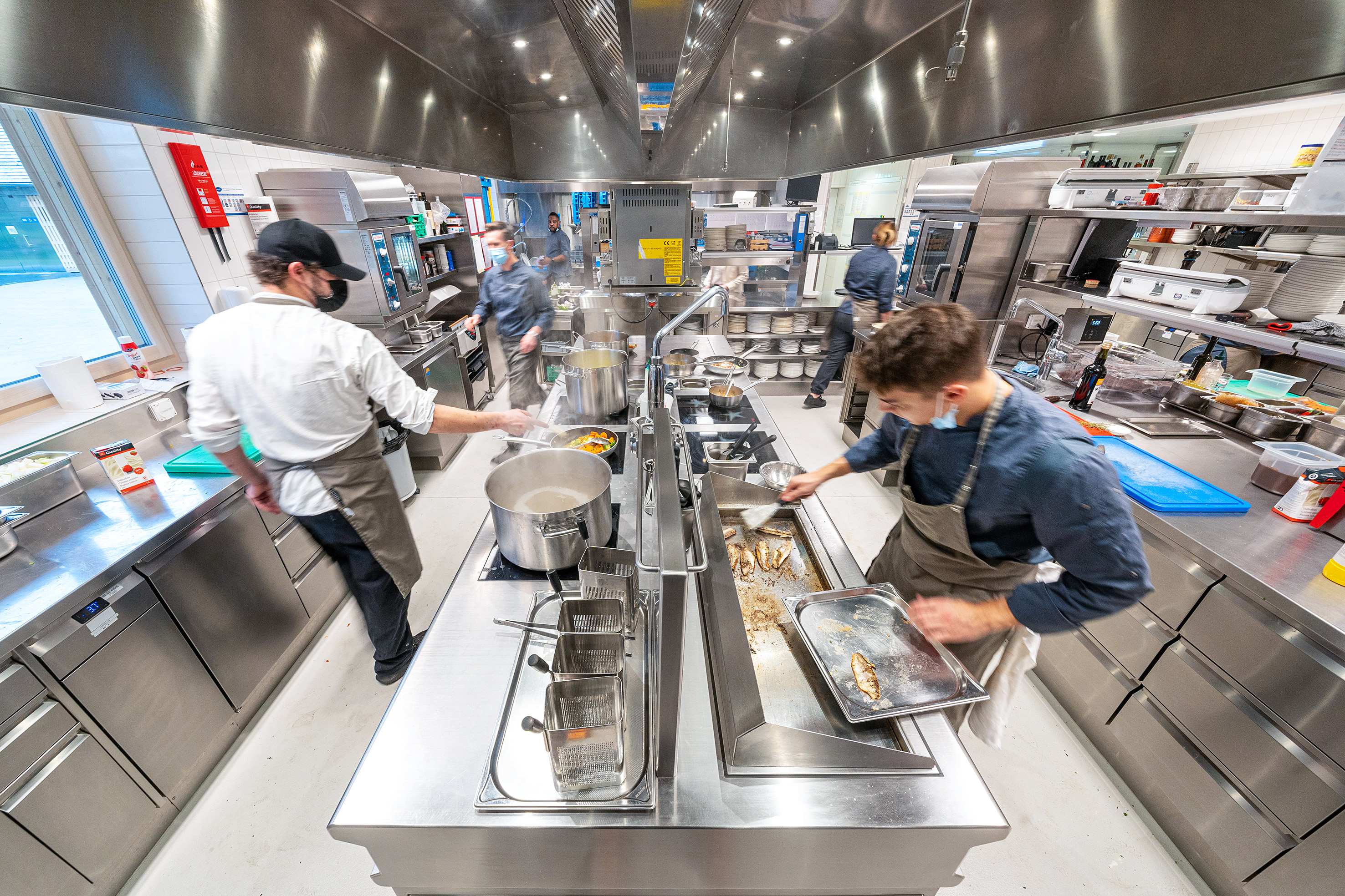 Für das zeitweise bis zu 50köpfige Team unter der Leitung von Sandra Tobler, engagierte Geschäftsführerin und Gastgeberin in der Fischerstube, hiess das am 1. Juli 2021 von 0 auf 100. Umso wichtiger war, dass alles von Beginn weg funktionierte – nicht zuletzt in der sehr kompakten Restaurationsküche. Denn die Gebäudegrösse war von Gesetzes wegen vorgegeben, davon wollte man so viel wie möglich für die Gäste nutzen. «Weiter sollte es eine klassische Küche sein, die auch einige Jahrzehnte Bestand haben sollte, also von bester Qualität und Zuverlässigkeit ist», sagt Projektleiter und Immobilienverwalter Martin Scheidegger von der Stadt Zürich. Das Architekturbüro Patrick Thurston holte sich dafür die Gastronomiefachplanerin GaPlan GmbH an Bord. Projektplaner und GaPlan-Geschäftsleitungsmitglied Klaus Mosimann zu GOURMET: «Unser Ziel war eine Frischküche mit allen Posten, die es dazu braucht. Aber so kompakt wie möglich. Dafür stimmten wir alle Abläufe optimal aufeinander ab, sparten wo immer möglich Platz, bei gleichzeitig hochstehendem Hygieneanspruch. Eine besondere Herausforderung war aufgrund des Hohlbodens die Führung der Lüftungsstränge. Das verlangte nach Spezialanfertigungen der Küchenmöbel. Ein weiteres wichtiges Kriterium bei der Küchenausschreibung war ausserdem, dass der Service innerhalb kürzester Zeit sichergestellt sein muss», betont Klaus Mosimann.
