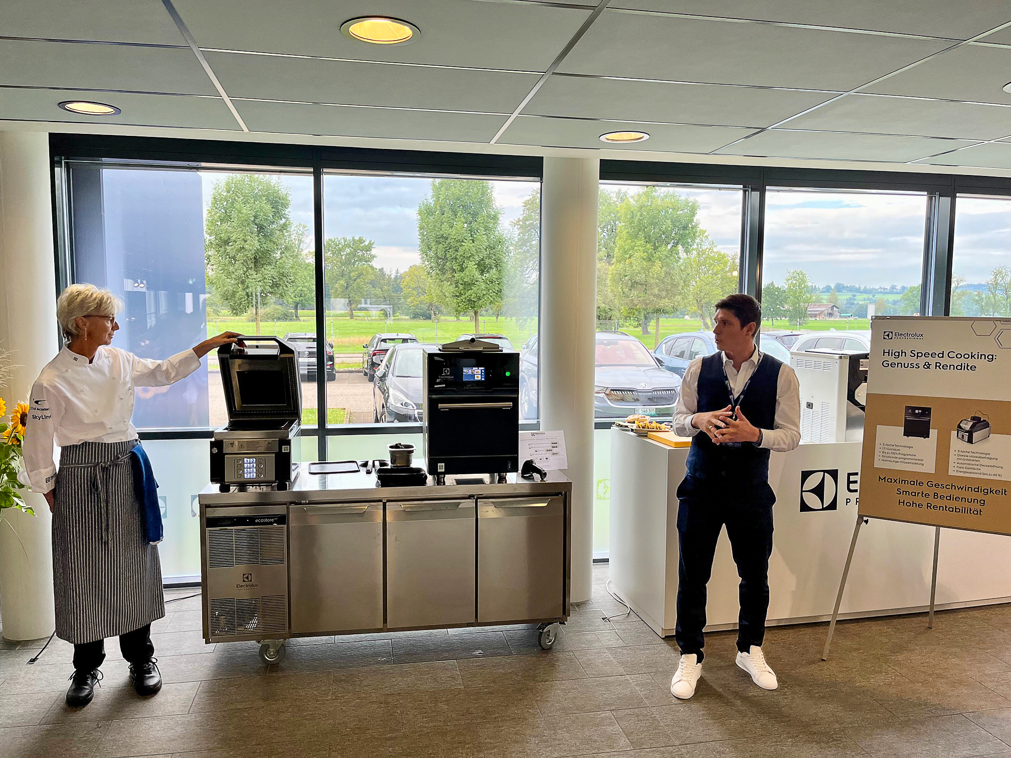 Während der Live-Kochvorführungen hatten die Teilnehmenden die Gelegenheit, die innovativen Geräte und Technologien von Electrolux Professional hautnah zu erleben. Besonders beeindruckend war die Präsentation der SkyLine-Serie, die aus zwei Hauptgeräten besteht: dem SkyLine Premium Ofen und dem SkyLine Schockfroster. Dank der SkyDuo-Technologie werden Cook&Chill-Prozesse automatisch synchronisiert. Das steigert die Produktivität um bis zu 20 Prozent, verbessert die Lebensmittelsicherheit durch HACCP-Datenkontrollen und reduziert Lebensmittelverschwendung, während gleichzeitig Arbeitsabläufe optimiert werden.