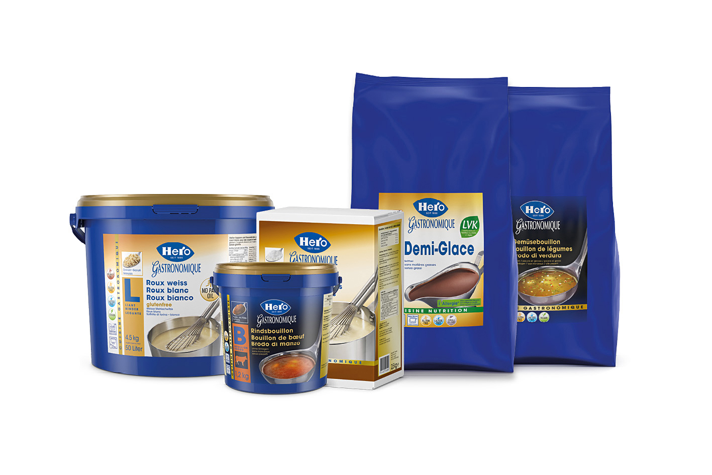 Hero Bouillons und Saucen bieten Ihnen vielfältige Grundlagen, damit Sie sich ganz auf die Zubereitung Ihrer Gerichte konzentrieren können. Dank unserer funktionalen Basisprodukte vereinfachen Sie Ihren Arbeitsprozess und gewinnen mehr Zeit für Ihre individuellen Ideen und Kreationen. Besonderen Wert legen wir auf konstante Qualität und gelingsichere Rezepturen, die beim Verfeinern oder als Basis mit viel gutem Geschmack überzeugen – genau so, wie es sich Ihre Gäste wünschen.