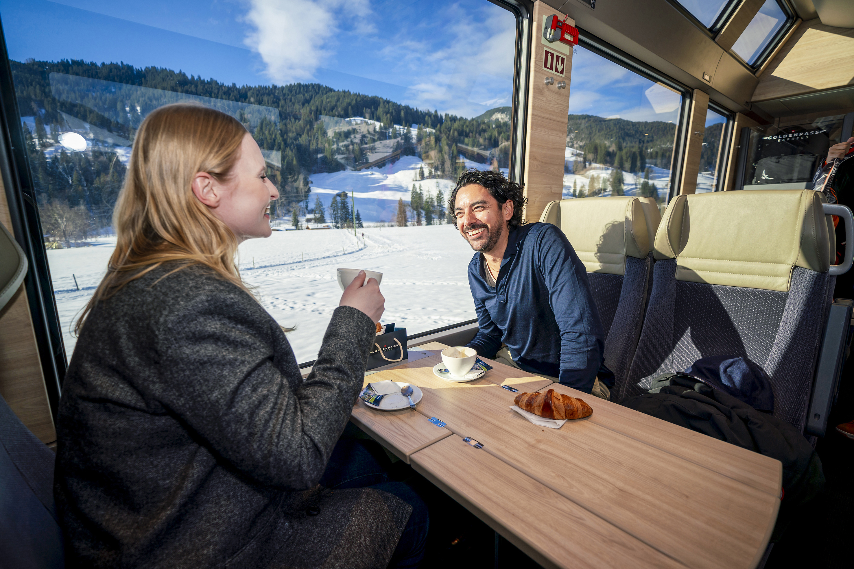 Der GoldenPass Express verkehrt viermal täglich mit acht Verbindungen - vier Hin- und vier Rückfahrten zwischen Montreux und Interlaken. «Eine Reservation ist empfehlenswert. Die Nachfrage ist hoch, vor allem bei Reisenden aus Asien und Amerika», sagt Enrico D’Herin und Frédéric Delachaux ergänzt: «Die MOB ist mehr als ein Verkehrsunternehmen: Wir bringen die Menschen nicht nur von A nach B, sondern nehmen sie mit auf eine Reise, die Emotionen weckt, Ausblicke schenkt und das Reisen selbst zum Erlebnis macht.»