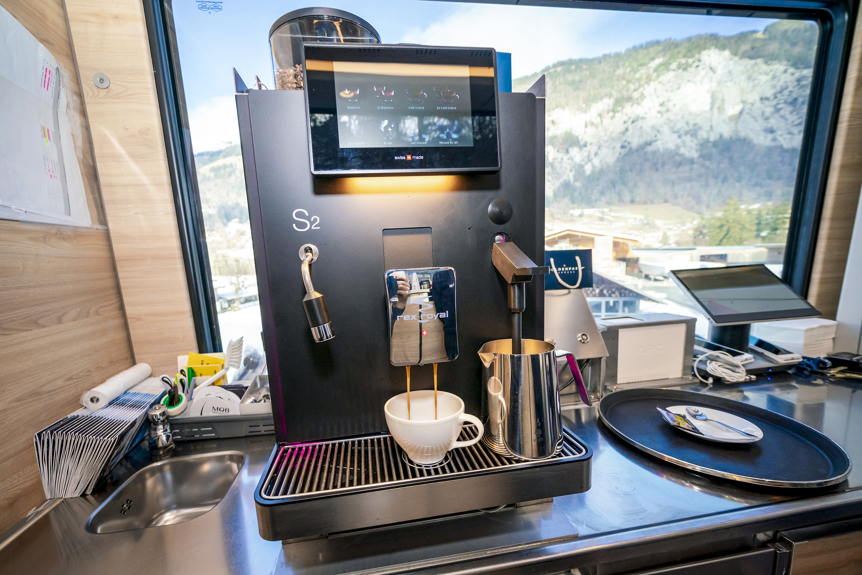 Eine kulinarische Reise parallel zur landschaftlichen also, die seit Anfang Jahr auch beim Kaffee neue Akzente setzt. Statt des bisherigen Instant-Kaffees stehen neu Cappuccino, Espresso und Café Latte in Barista-Qualität auf der Karte, die neben Punsch, Tee und heisser Schokolade mit der S2 Railway CST von Rex-Royal zubereitet werden. «J’adore la machine», schwärmt Filomena Pisoni, Stewardess an Bord. «Ich schätze die einfache Bedienung, das schöne Design und natürlich die Barista-Qualität des Kaffees.»
