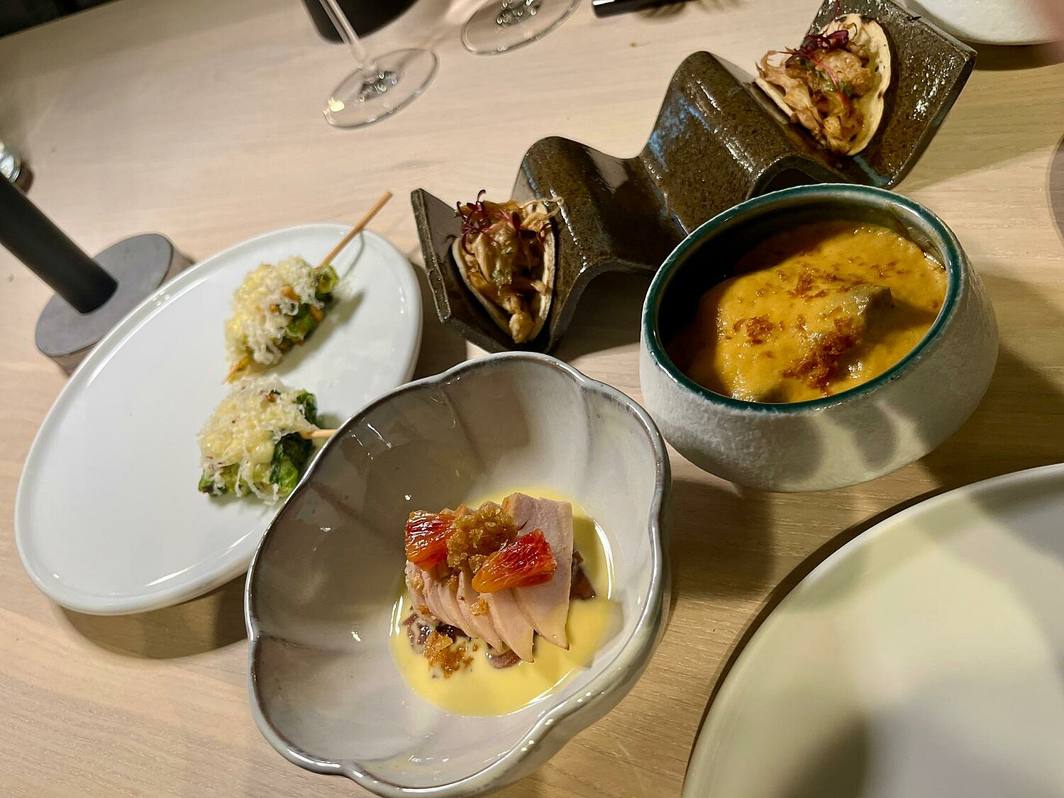 Kulinarische Kunstwerke, das trifft es eher. Aufgehängt, aufgespiesst, geschichtet, arrangiert, mit einer Prise Übermut und einer grossen Portion Leidenschaft. In jedem Miniaturgericht steckt viel Liebe, Geschmack und technische Raffinesse.