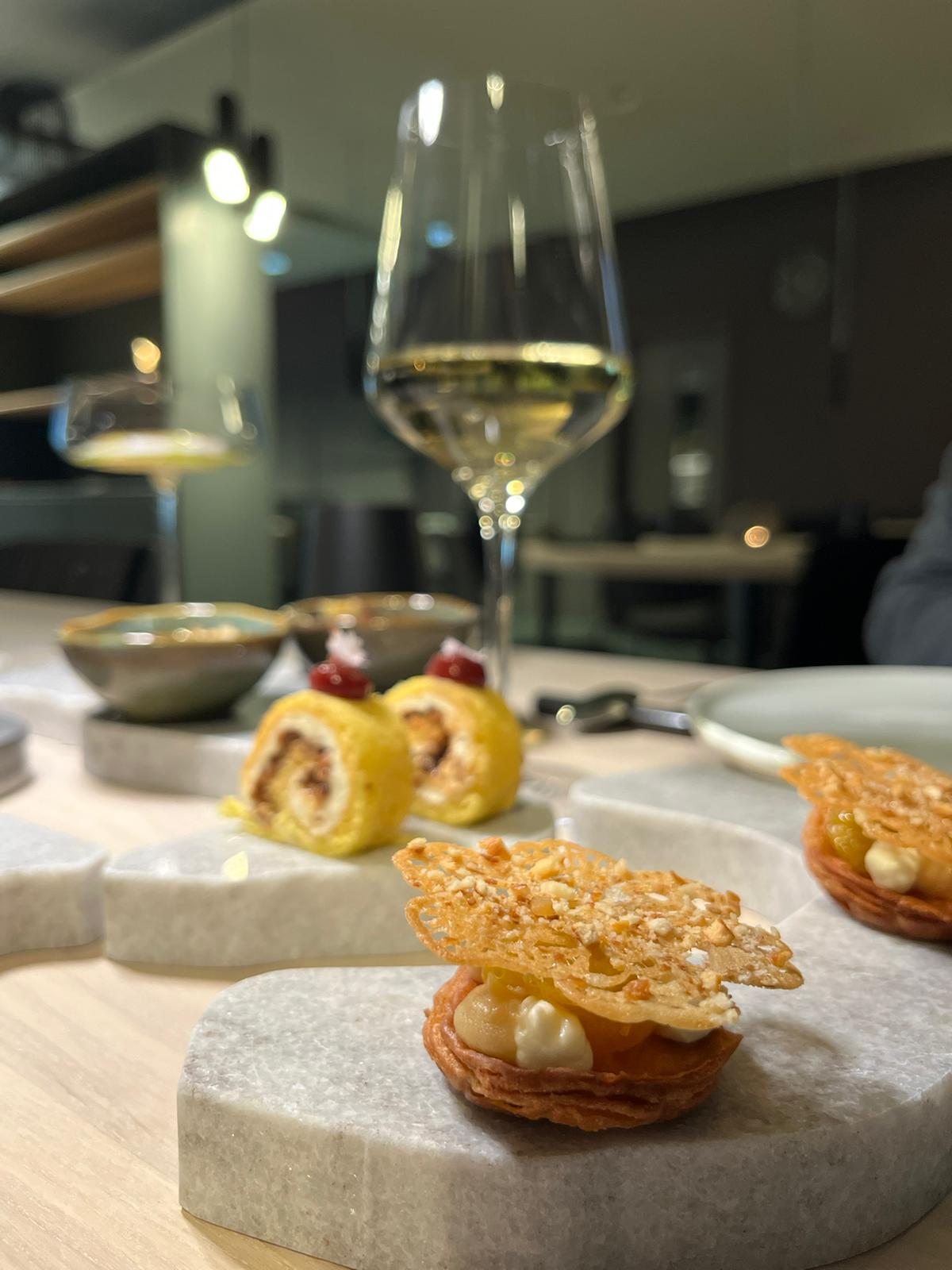 Diese Häppchen werden nicht als Beiläufigkeiten zum Wein gereicht, sondern eher umgekehrt: Zu jedem Häppli-Gang – sieben sind es insgesamt – gibt es coole Weine, erlesene Spezialitäten, oder wer es nüchterner mag: non-alkoholische Drinks – auch diese kommen nicht einfach von der Stange.
