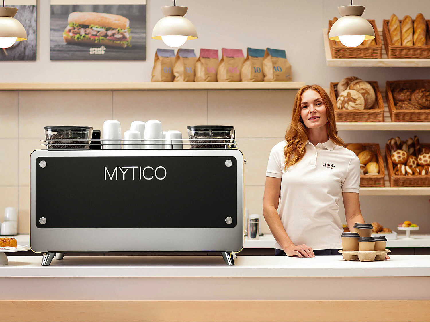 Die Produktlinie Mytico überzeugt mit makellosem italienischem Design in Verbindung mit Schweizer Engineering und setzt so neue Massstäbe in der Kaffeeindustrie. Mit ihrer unverwechselbaren Form, dem Auslauf, der an einen Siebträger erinnert, den abgeschrägten Füssen im hochwertigen Industrie-Look ist sie ein Hingucker in jedem Ambiente. Die einzigartige Formgebung und die niedrige Höhe der Mytico ermöglichen es dem Personal, sich während der Zubereitung ganz den Gästen zu widmen und so immer wieder Kaffeemomente zu schaffen, die in bester Erinnerung bleiben. Denn die neue Kaffeelösung brüht dank feinster Schweizer Ingenieurskunst stets köstliche Kaffeegetränke in Barista-Qualität, Tag für Tag und an jedem Standort. So bietet die Mytico höchste Flexibilität für ein breites Einsatzspektrum und erleichtert den Einstieg in neue Kundensegmente.