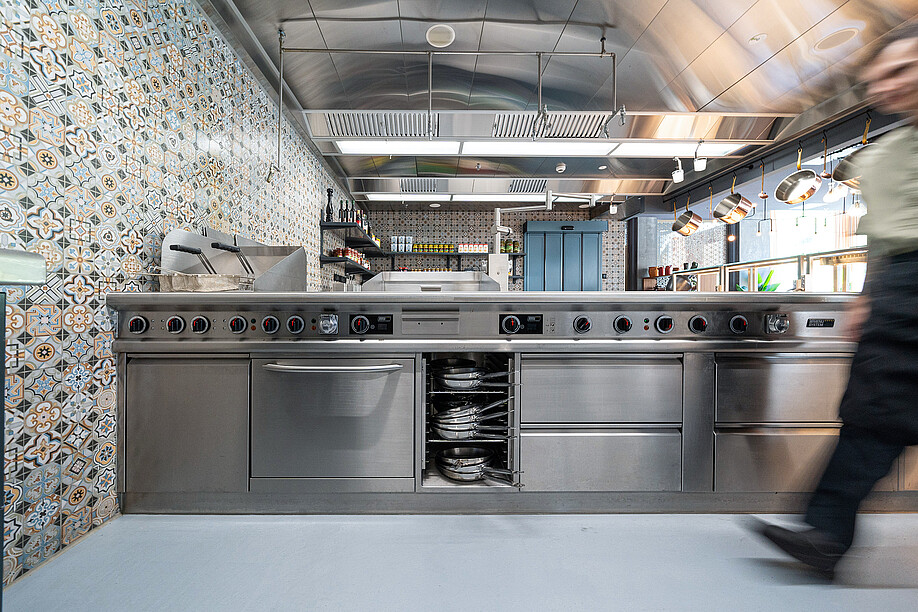 - Im Babel (Hyatt Regency) findet sich eine separate, offene Küche sowie ein zusätzlicher, grosszügiger Arbeitsbereich im Hintergrund.