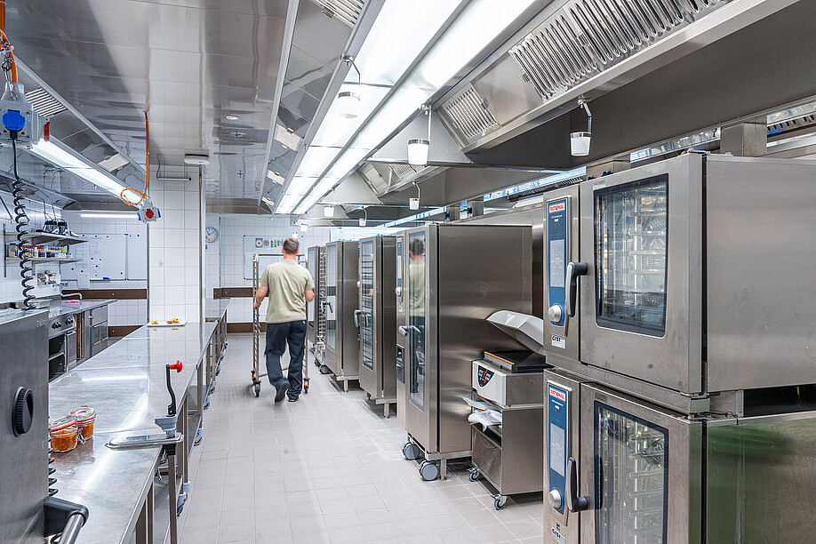 - The Circle Convention Center verfügt über eine grosse Produktionsküche sowie einen Patisserie- und Bäckereibereich, von dem aus alle drei Formate versorgt werden. Hinzu kommen eine weitere, kleine Produktionsküche sowie drei Vorbereitungsbereiche auf der Höhe der beeindruckenden, unterteilbaren Convention Hall, von denen aus die Gäste bei Anlässen kulinarisch bedient werden können.