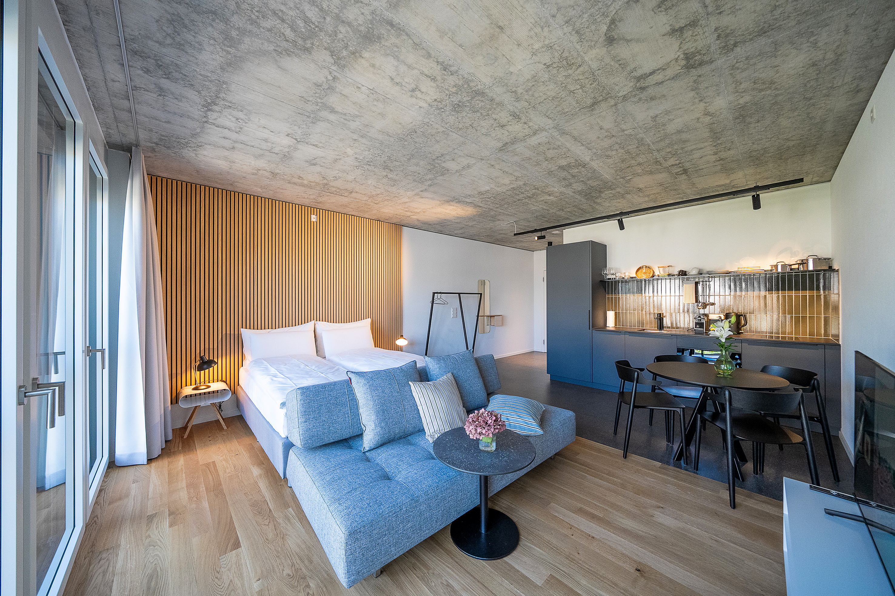 Jedes Apartment, der Gastronomiebereich und das Rooftop spiegeln Agostinhos Leidenschaft für Architektur, für hochwertige Materialien und seine Haltung als grosszügiger Gastgeber wider. Es ist sein Ziel, einen weltoffenen Ort und Treffpunkt für innovative Architektur, gediegene Business-Atmosphäre und kulinarische Genüsse zu schaffen.