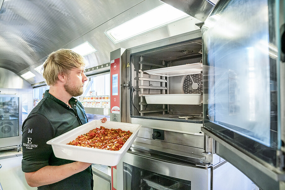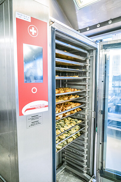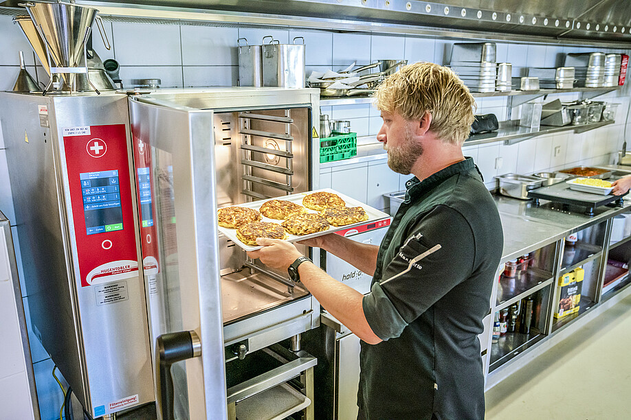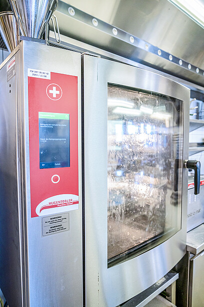 - Einfache Bedienung: «Wer ein Smartphone bedienen kann, kann auch einen Practico Vision Plus bedienen», sagt Reto Emmenegger von Hugentobler. Eine Aussage, die Max Marte bestätigt: «Auf dem Mainboard hat man direkt die wesentlichen Funktionen wie Dämpfen, Hitze oder Regenerieren. Dann lassen sich Zeit und Temperatur eingeben, allenfalls noch Zusatzoptionen. Türe schliessen und fertig», erläutert Max Marte das einfache Handling. Zusätzlich stehen 1000 Programme zur Verfügung, die individualisiert werden können. «Auch kann jederzeit manuell eingegriffen werden.»