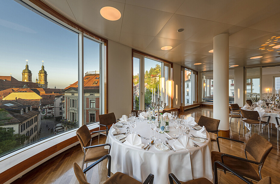 - Im Bistro St.Gallen werden nicht nur die Hotelgäste am Frühstücksbuffet, sondern auch Tagesgäste zum Mittag- und Abendessen mit köstlichen Gerichten und hauseigener Pâtisserie verwöhnt.