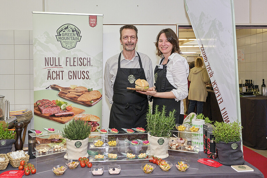 Irene Zurkirchen und Armin Aschwanden mit einigen The Green Mountain-Produkten.