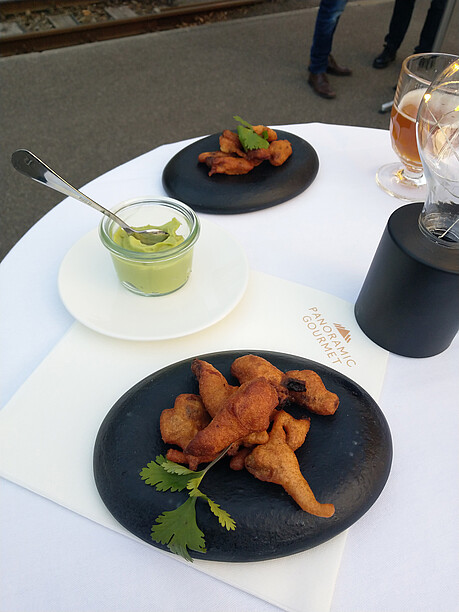 Die 18 Teilnehmer wurden am Bahnhof Chur mit lokalem Bier und Heuschrecken im Bierteig begrüsst. «Zum Glück sieht man die Insekten nicht», meinte lachend eine Teilnehmerin. Ein Grossteil der Gäste hatte vor der Insekten-Genussfahrt noch nie bewusst Insekten als Lebensmittel konsumiert.