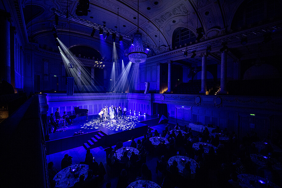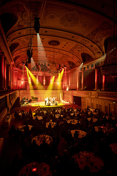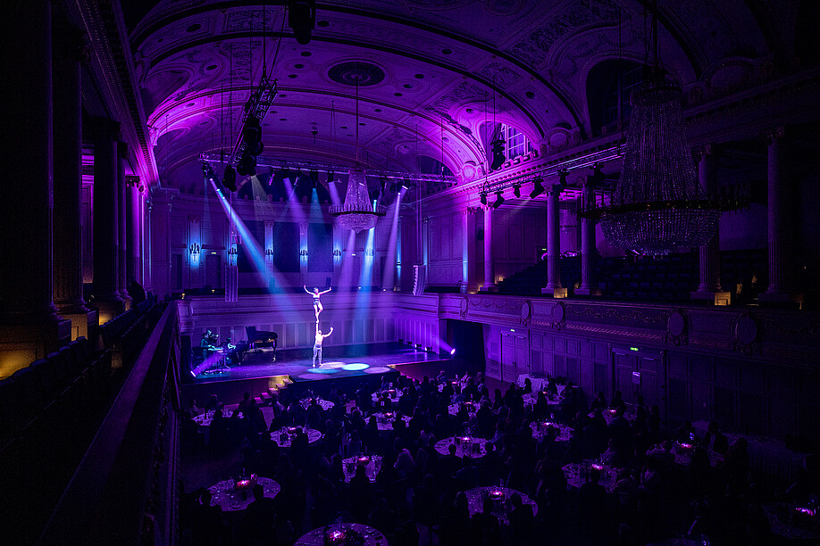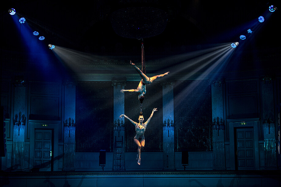 Der grosse Festsaal des Casino Bern erstrahlt, wie ihn die Stadt noch nie gesehen hat! Mit der Höhe eines Zirkuszelts und der Ausdruckskraft eines historischen Ballsaals strahlt er - aufgewertet durch ein modernes Lichtkonzept - Festlichkeit aus. Die Hauptrollen des Abends gehören der Musik, der Kulinarik, der Akrobatik und der Illusion. Diese vielen wohltuenden Momente sorgen für ein Sinneserlebnis, das in Erinnerung bleibt!