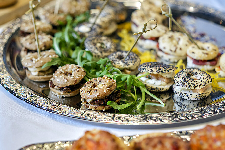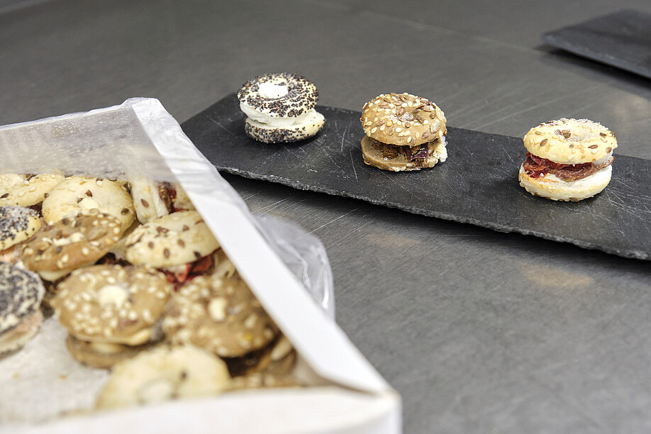 Die Bagels mit «Jö-Effekt» überzeugen schon rein optisch. Sie werden von Hand in einer Manufaktur zusammengestellt und bieten im Mini-Format alles, was die Grossen auch haben. Die Aufmerksamkeit ist ihnen damit gewiss. Sie sind aber auch im Geschmack ein Genuss. Umso besser, so dass man getrost mehrmals zugreifen kann. Ein perfekter Fingerfood, ob serviert zum Apero oder schön präsentiert auf dem Buffet. Der grosse Vorteil für Gastronomie und Catering: ein Mini Bagels Mix besteht aus 48 tiefgefrorenen, gefüllten Bagels à 14 Gramm, jeweils 16 Stück pro Sorte. Vor dem Einsatz können sie einzeln aus dem Karton entnommen werden und müssen nur noch bei Raumtemperatur aufgetaut werden. «Zum einen lassen sich die Bagels dadurch gezielt nach Bedarf einsetzen, was Foodwaste verhindert und Kosten spart. Zum anderen können sie problemlos auch ohne Koch- oder Gastroausbildung zubereitet werden, was beim aktuellen Fachkräftemangel eine echte Entlastung bildet», sagt Product Manager Thomas Hartmann.