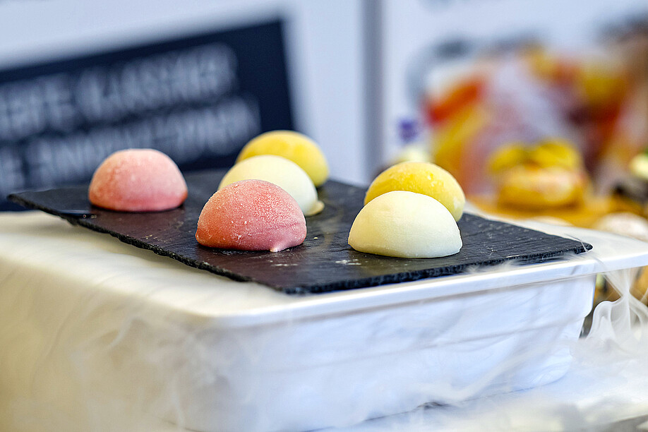Abgerundet wird das Mini-Dessert-Sortiment mit zwei Trenddesserts schlechthin: längst sind Churros von keinem Street Food Festival mehr wegzudenken und stossen knusprig frittiert auch auf einem Buffet auf Begeisterung, sei es mit einer Schokoladensauce serviert oder gleich mit Schokolade gefüllt, wie man sie ebenfalls im Delicool-Sortiment vorfindet. Aber auch die Mochis funktionieren hervorragend auf dem Buffet oder – schön zusammengestellt — auf einem bunten Dessertteller. Sie sind eine besonders typische Delico-Delikatesse, ist das Unternehmen doch bekannt dafür, innovative Produkte in die Schweiz zu bringen. Die Dessertspezialität stammt ursprünglich aus Japan – entsprechend hat der Partner der Delico AG bei deren Entwicklung auch extra einen japanischen Berater beigezogen. Das Resultat ist ein hochwertiges Glace, umhüllt von einem Reisteig, hergestellt nach traditionellem Rezept im Manufaktur-Stil. Dabei wird auf erlesene, hochwertige Rohwaren gesetzt. So enthalten die Glaces beispielsweise einen sehr hohen Fruchtanteil – die Mochis gibt’s mit Erdbeerrahmglace, Kokosnussrahmglace sowie Mangosorbet. Ein riesiger Hingucker und ein grosser Genuss im kleinen Format und mit wenig Aufwand auf den Teller gebracht. Zur Freude von Gastronomen und Gästen!