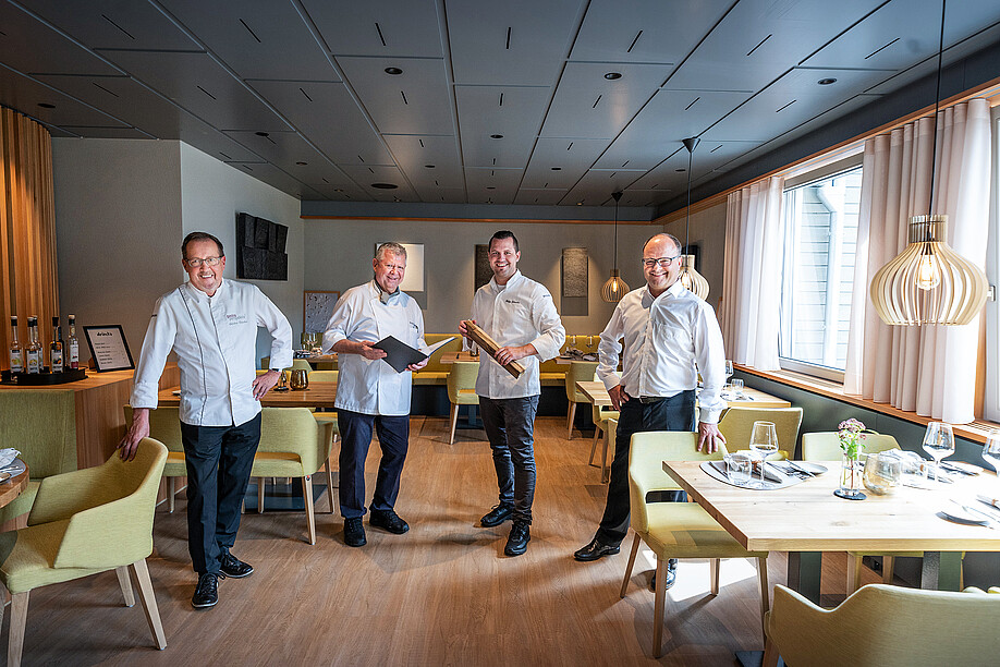 Dass trotzdem mit gleich grossem Kochteam wie bis anhin gearbeitet wird, ist den neuen und innovativen Arbeits- und Kochabläufen zu verdanken. Philipp Schneider: «Seit der Wiedereröffnung arbeiten wir im 4/3-Modell. Das heisst: Vier Tage in der Küche arbeiten, drei Tage pro Woche frei, davon mindestens zwei am Stück und einen Wochenendtag. Dafür gibt es keine Zimmerstunde mehr, jeder und jede arbeitet 10,5 Stunden pro Tag. Die ruhige Zeit am Nachmittag wird genutzt, um in grossen Mengen vorzuproduzieren. So sind wir produktiver, bringen mehr Volumen hin, sparen Zeit und müssen später nur noch gekonnt regenerieren und anrichten.»