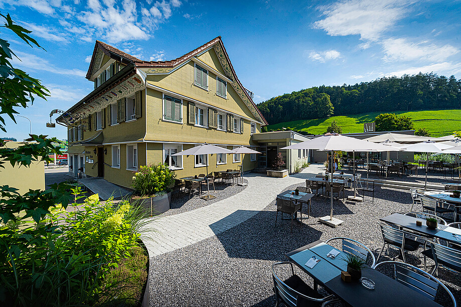 Auch viele Kulinarik-Fans übernachten hier. Sie kommen teilweise von weit her in den Gilde-Betrieb. Geboten wird eine hochstehende, authentische und saisonale Küche, geprägt von regionalen Produkten – unter anderem mit dem Culinarium-Gütesiegel und dem Label «ChääsWelt Toggenburg», das die riesige Käse-Vielfalt der Region vertritt. Gut 200 Gerichte und Menus bereiten Philipp und Bruno Schneider – der gleich wie Rita Schneider weiterhin tatkräftig mit anpackt – zusammen mit drei Köchen und fünf Lernenden an einem durchschnittlichen Tag zu. Tendenz steigend: Denn das erweiterte Angebot hat riesigen Anklang gefunden!